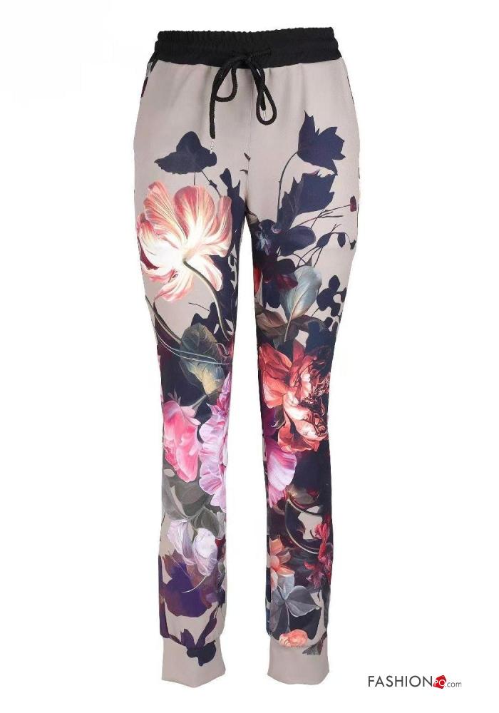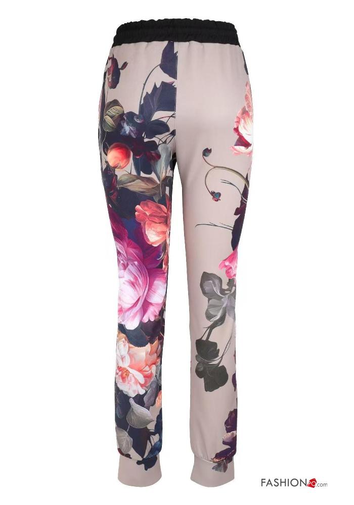 Pantalone Fantasia floreale con elastico con tasche con corda