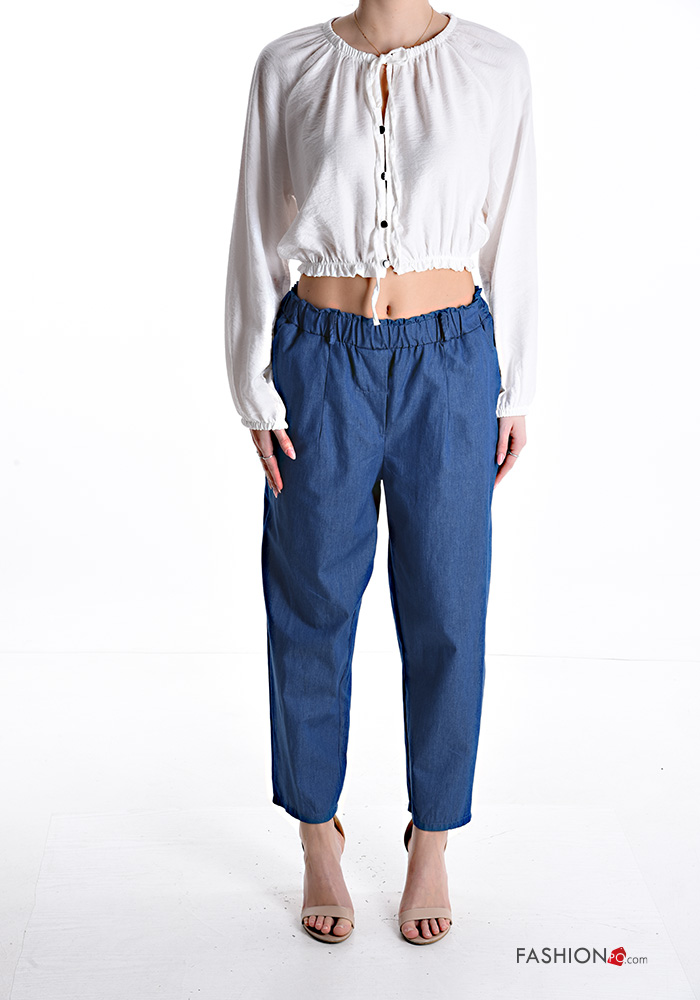 Home > Abbigliamento > Pantaloni > Pantalone in Cotone denim con tasche con elastico