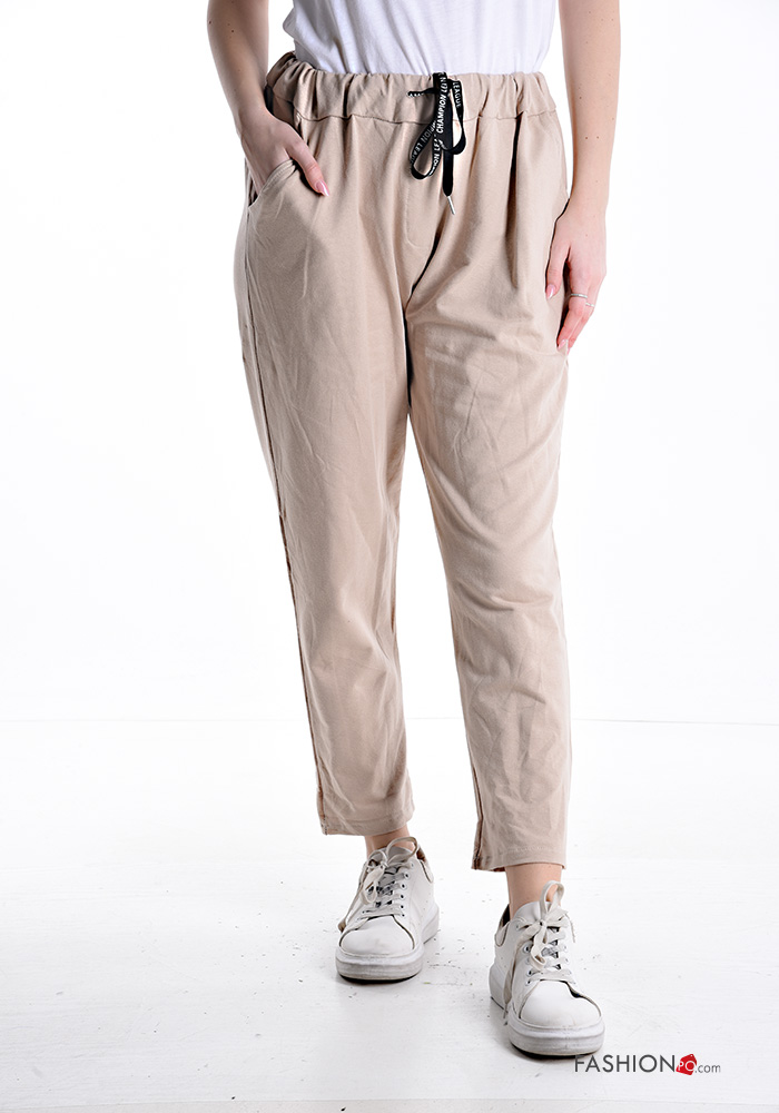 Pantalone in Cotone con elastico con tasche con fiocco
