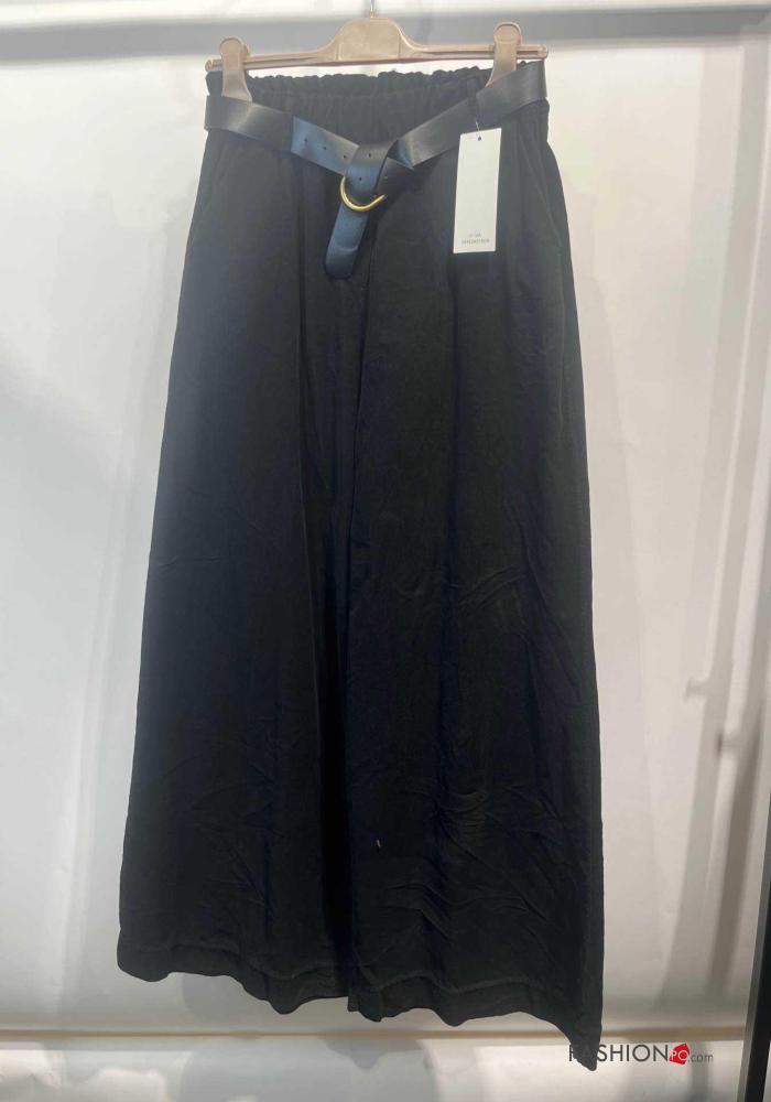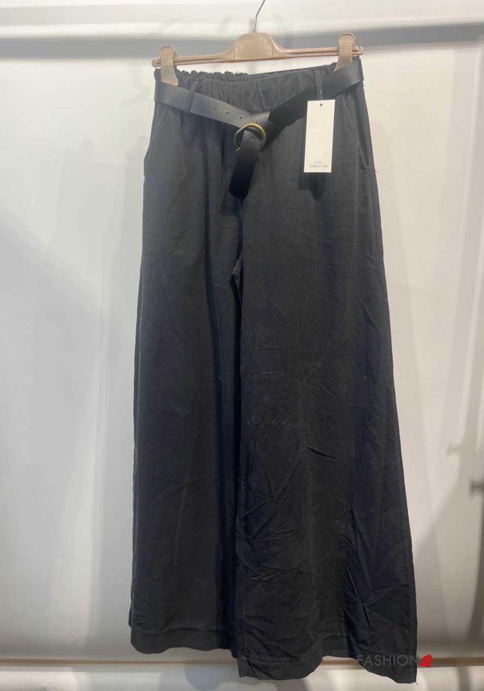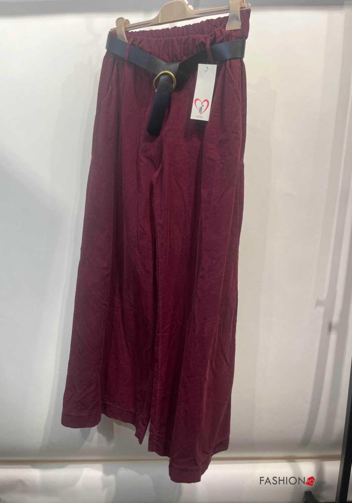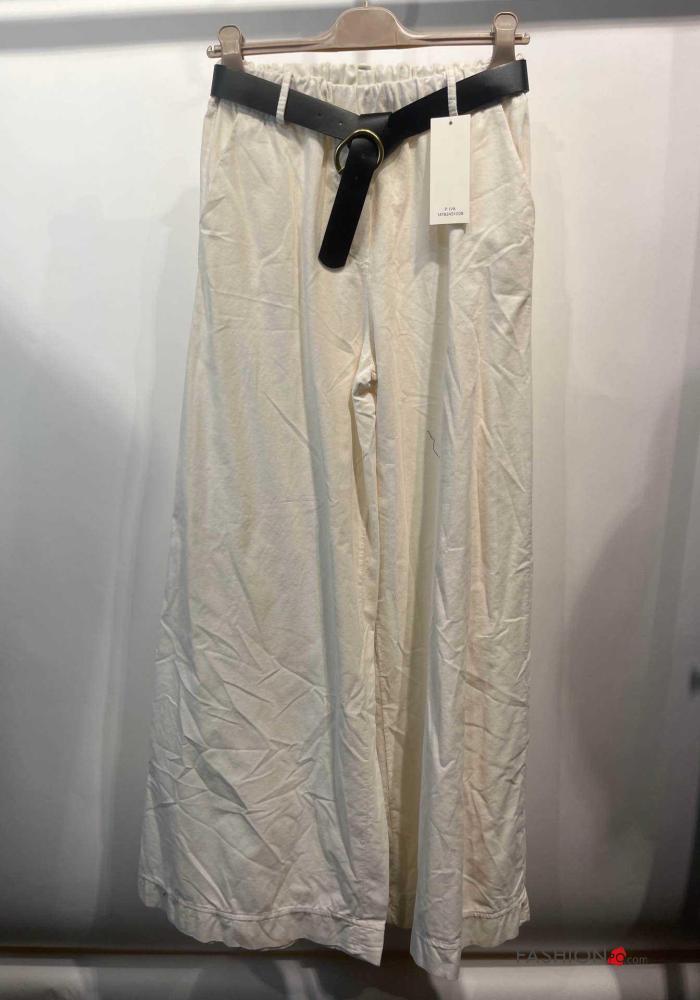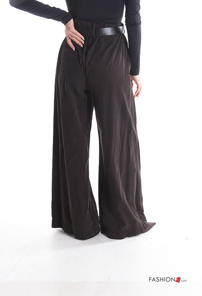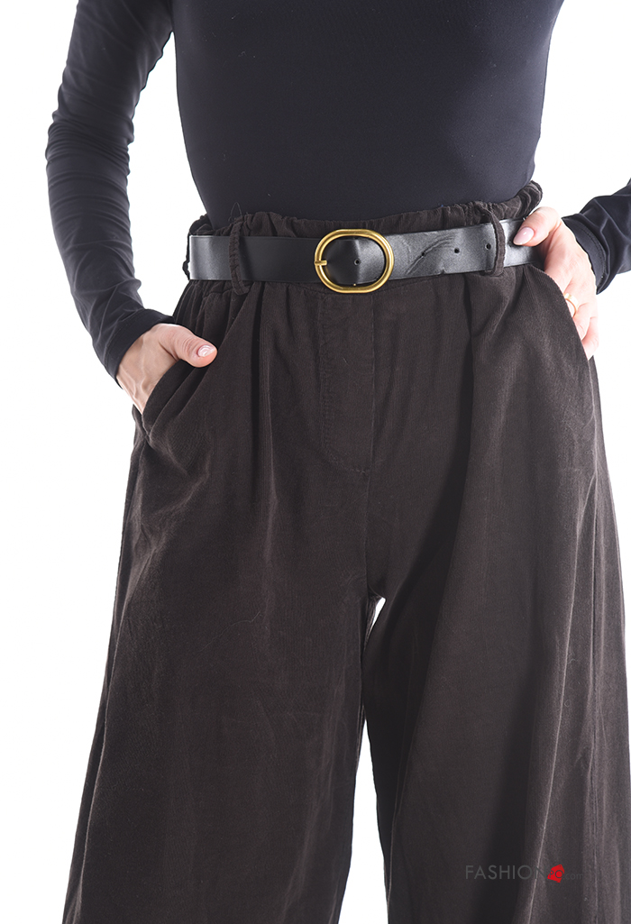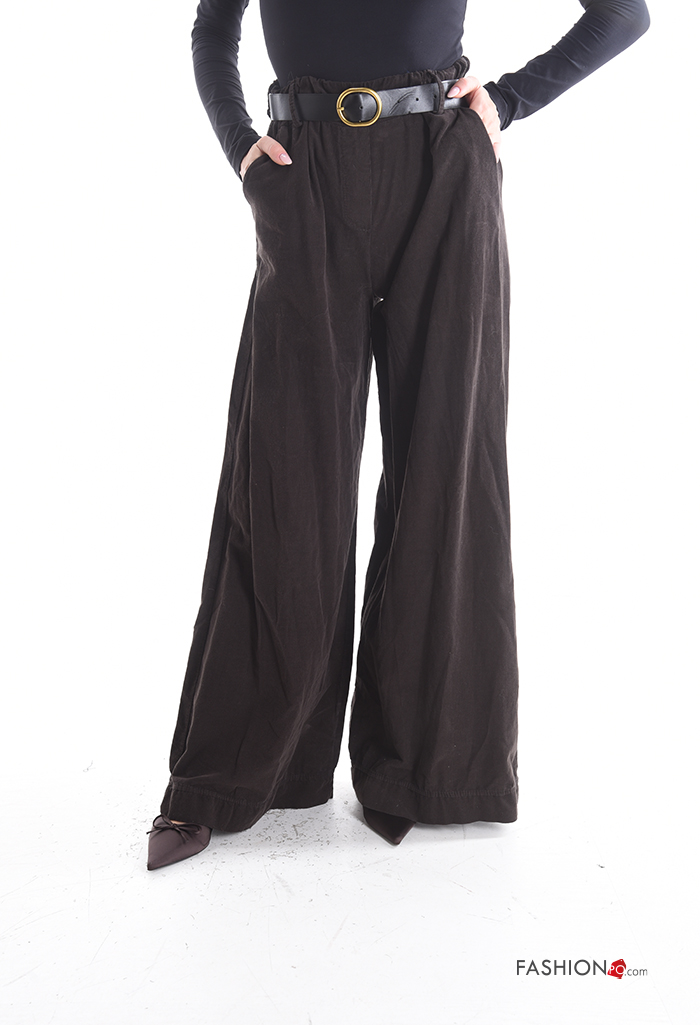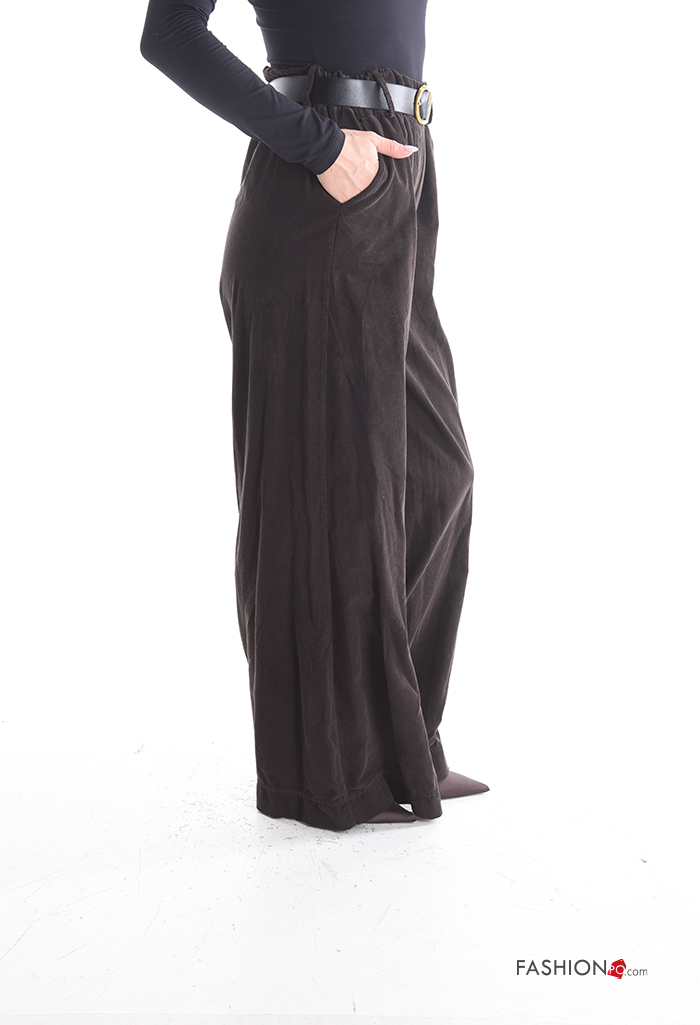 Pantalone in Cotone in velluto wide leg con elastico con cintura con tasche