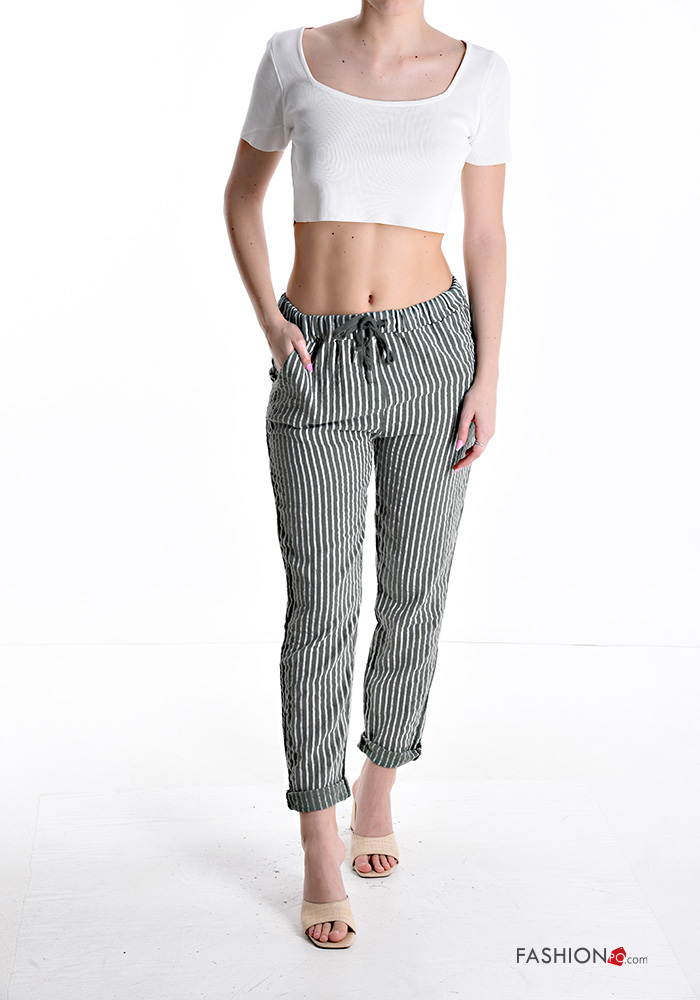 Home > Abbigliamento > Pantaloni > Pantalone in Cotone Fantasia righe con tasche con coulisse
