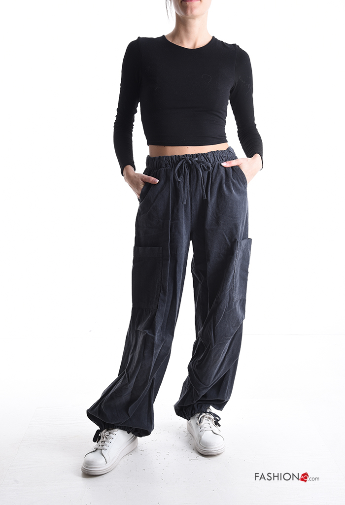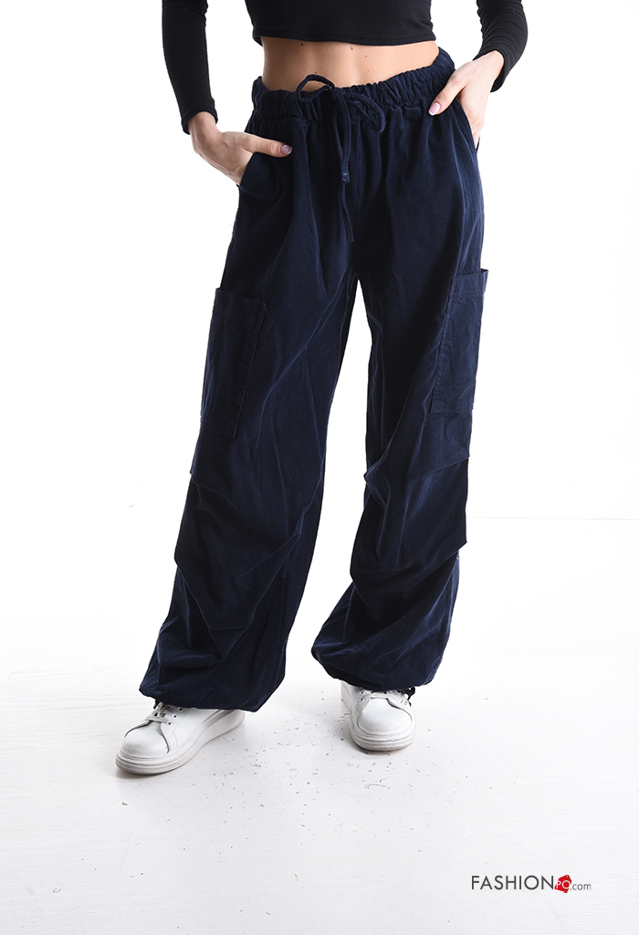 Pantalone in Cotone in velluto con tasche con elastico