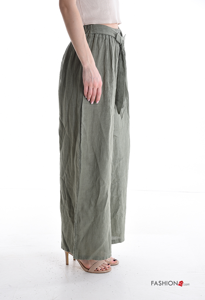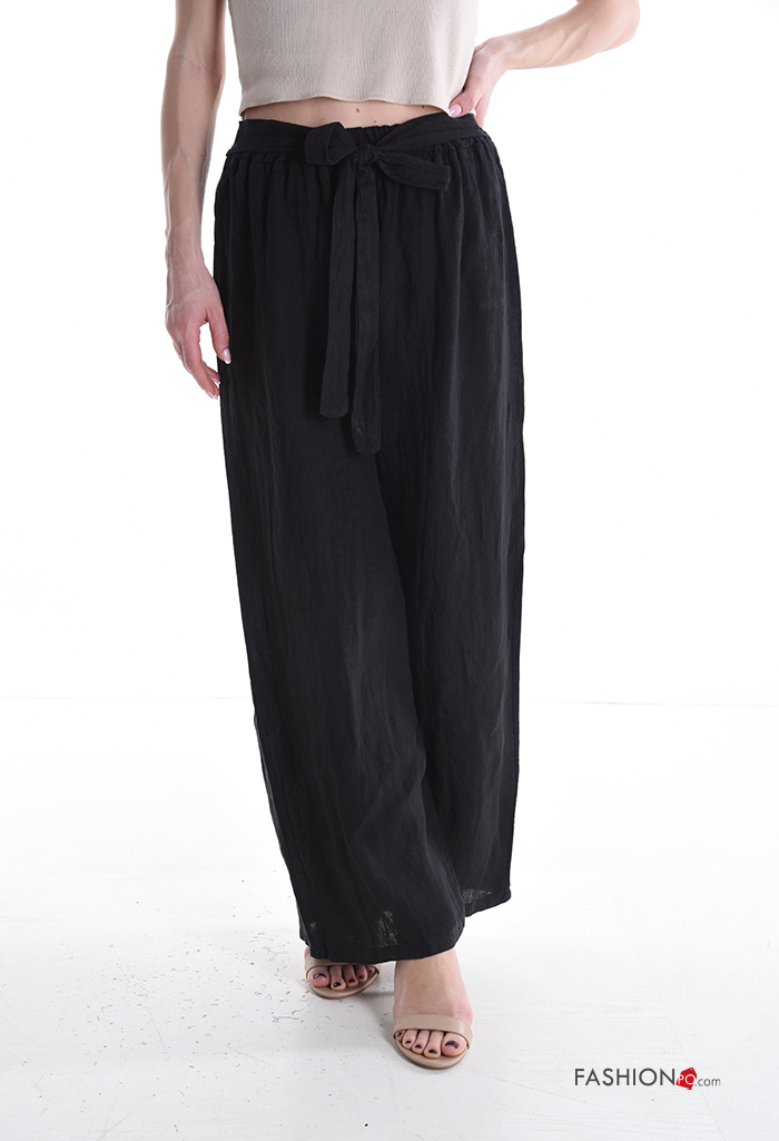 Home > Abbigliamento > Pantaloni > Pantalone in Lino wide leg con elastico con fiocco con cintura in stoffa