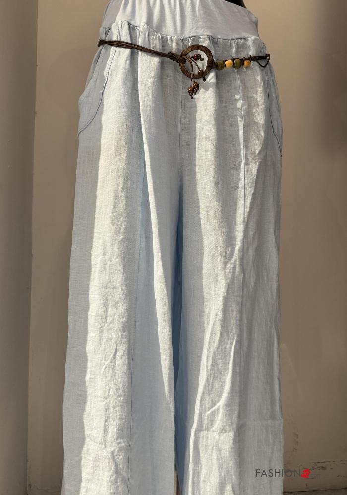 Pantalone in Lino con cintura con tasche