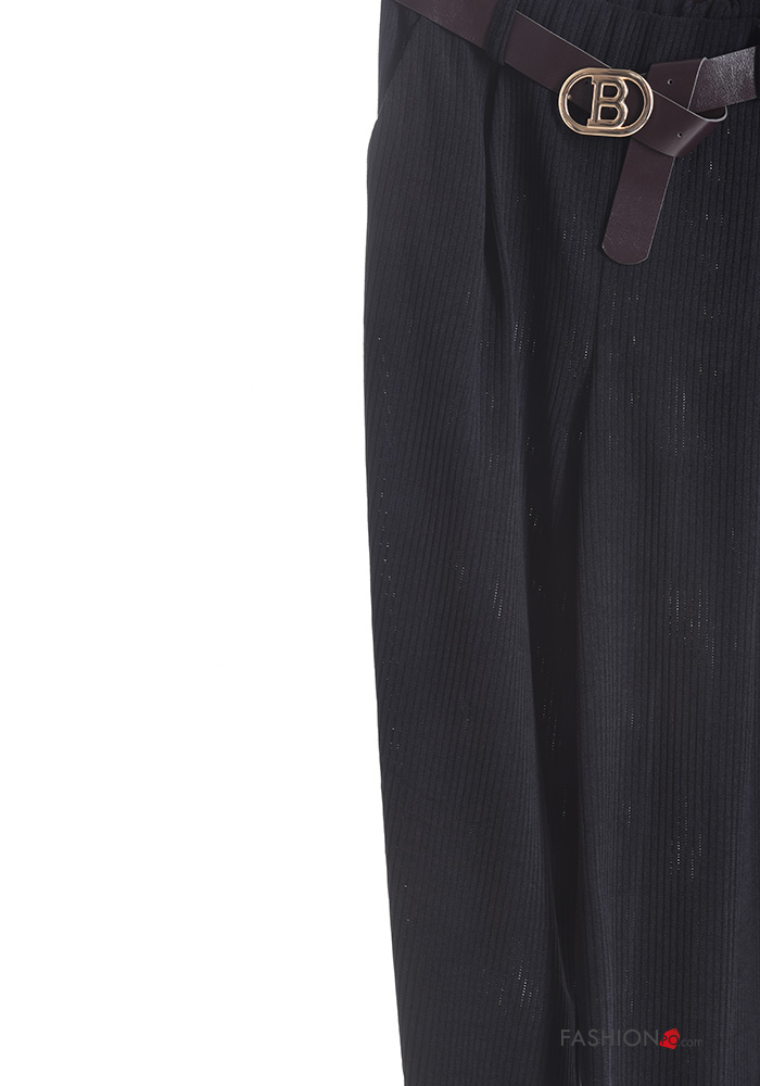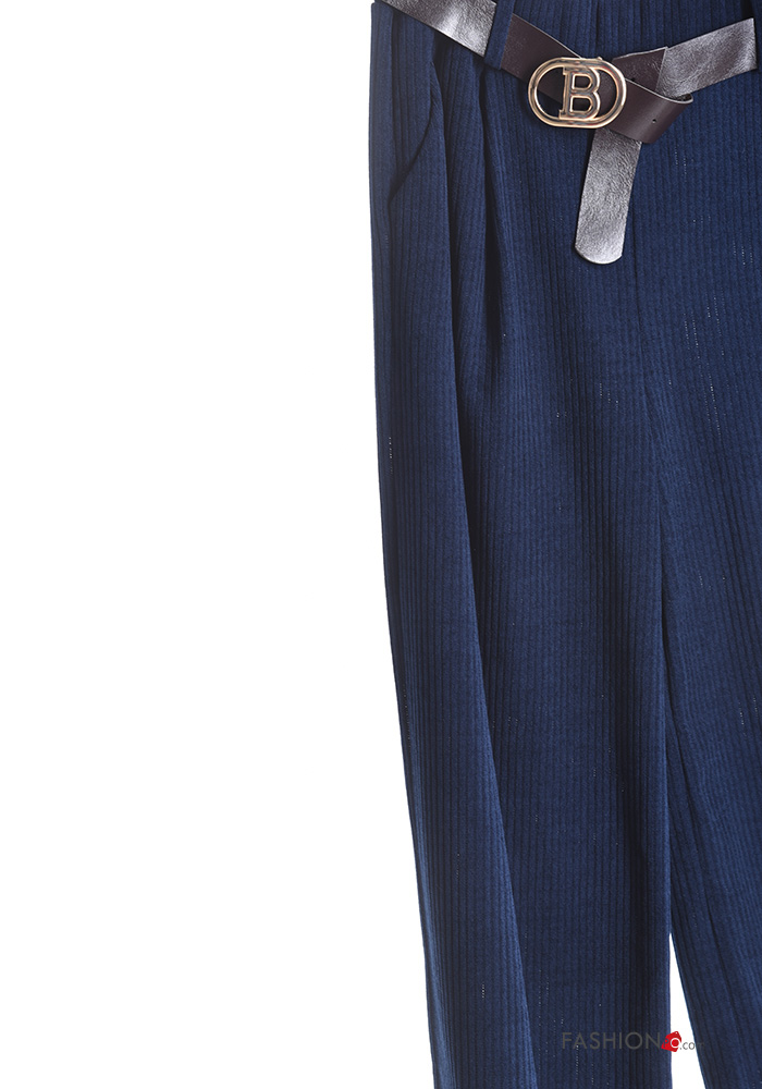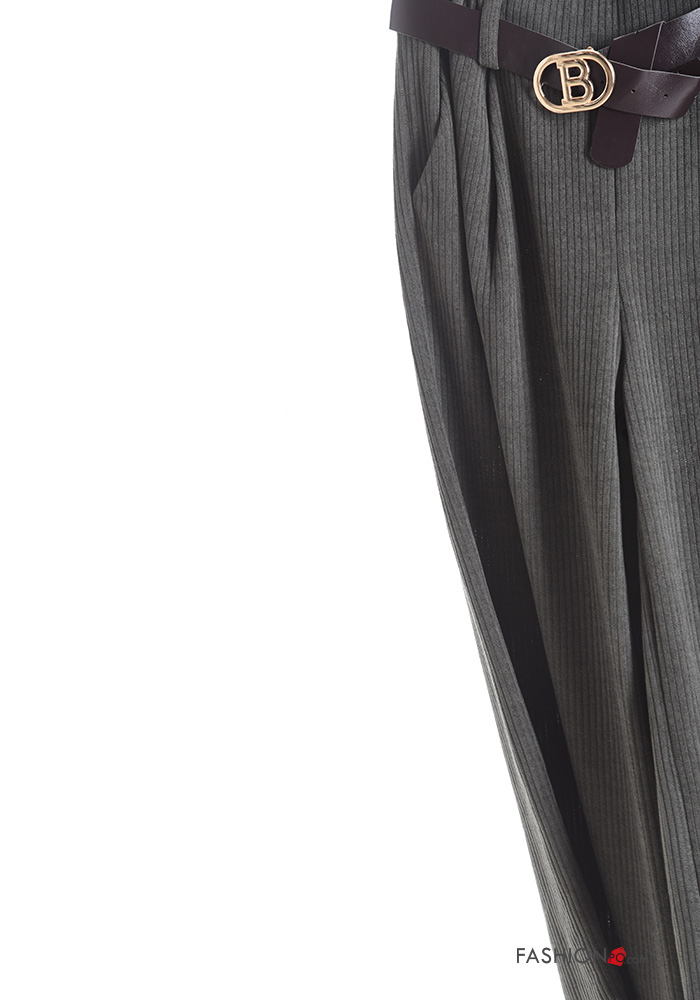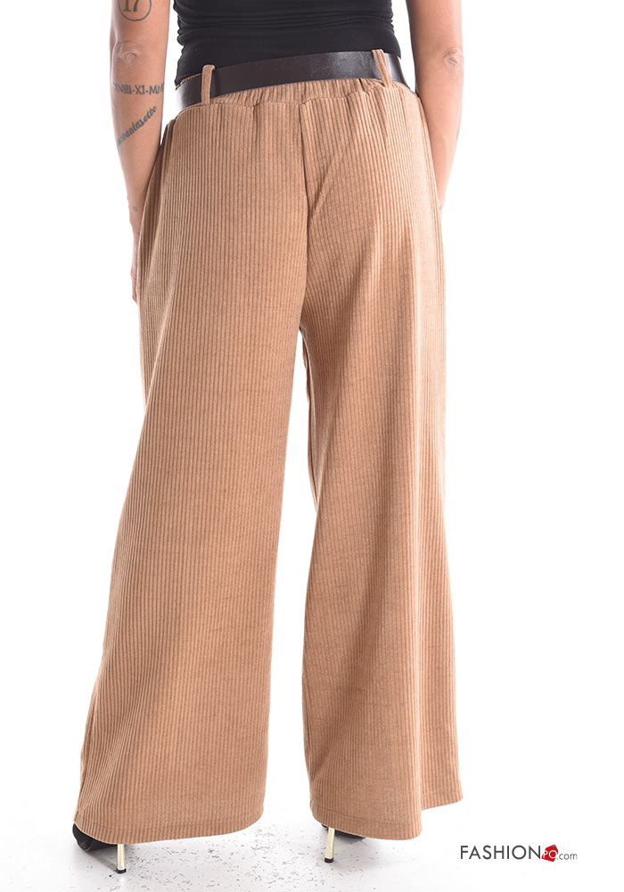 Pantalone in Misto Lana wide leg in velluto costine con cintura con tasche