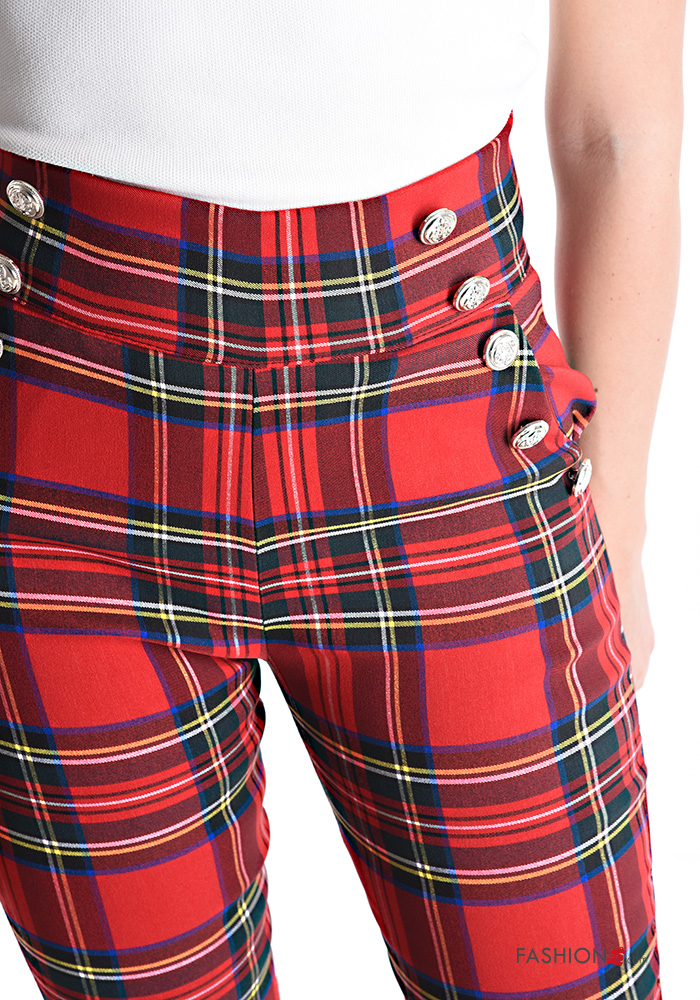 Pantalone skinny Fantasia tartan con bottoni con zip