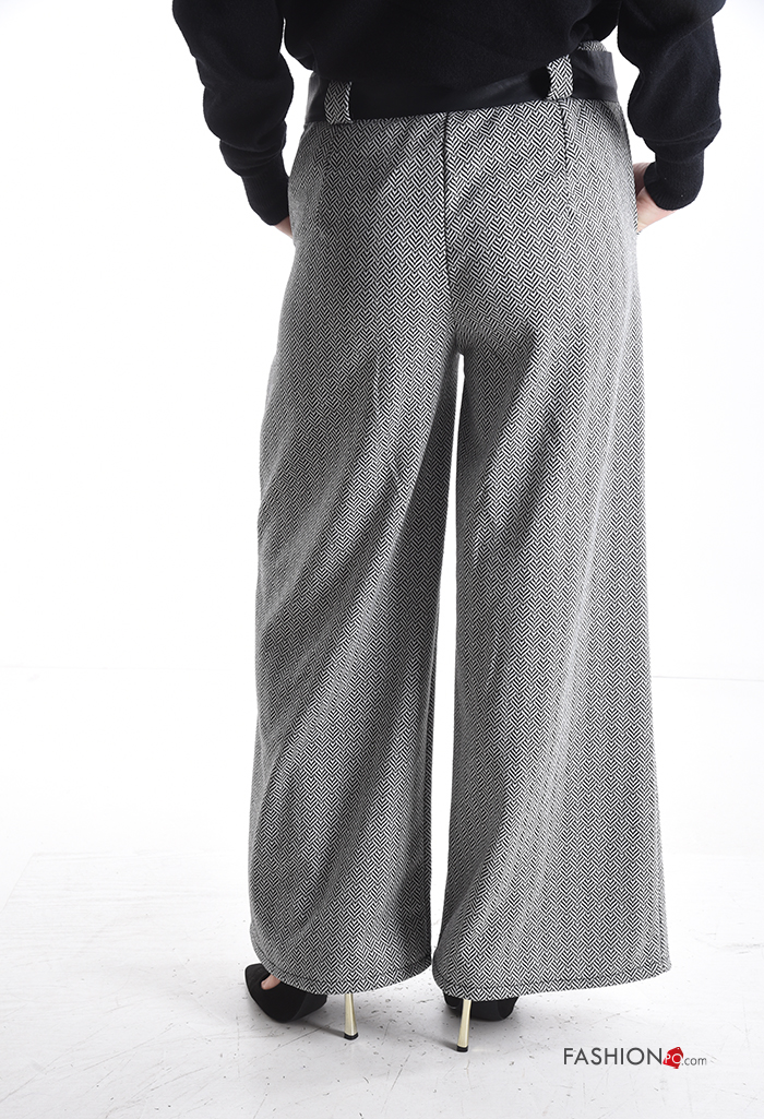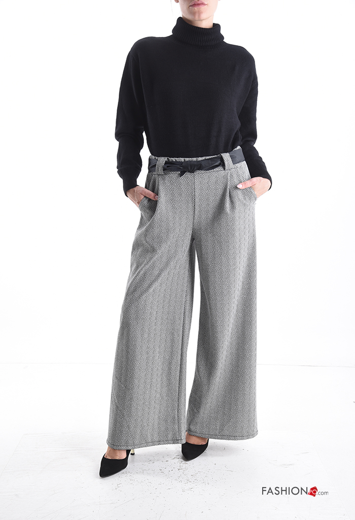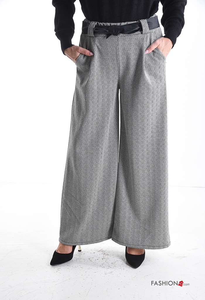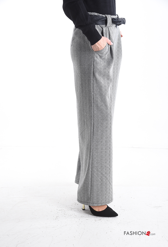 Home > Abbigliamento > Pantaloni > Pantalone wide leg Fantasia geometrica con tasche con nastro