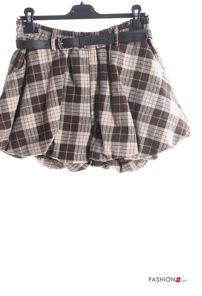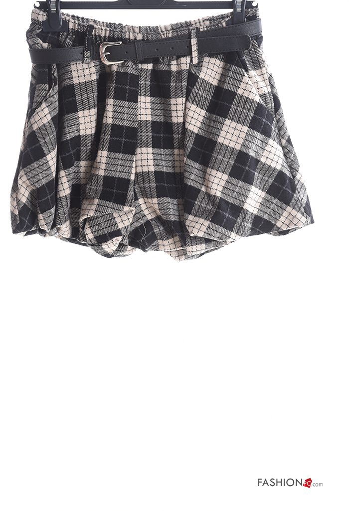 Pantaloncino Short in Cotone Fantasia tartan con elastico con cintura con tasche