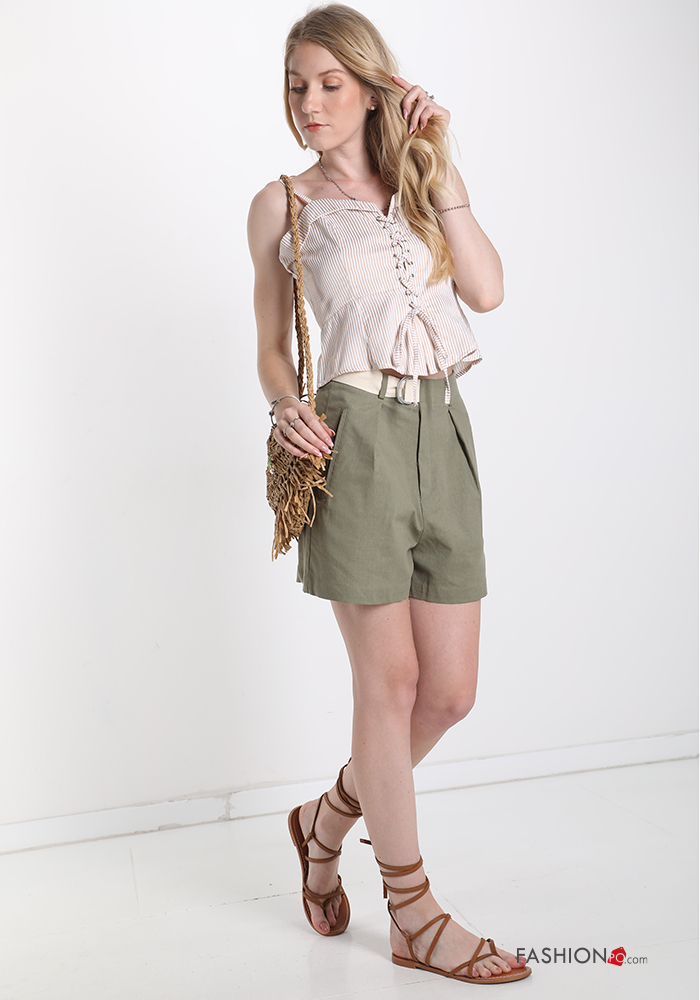 Pantaloncino Short in Lino con cintura con tasche