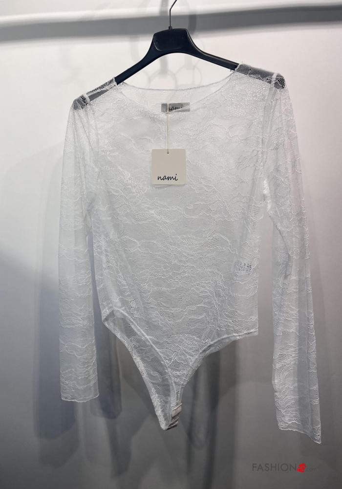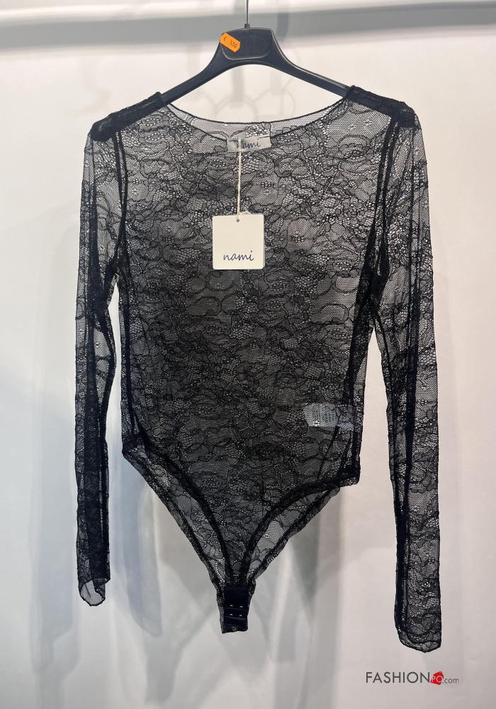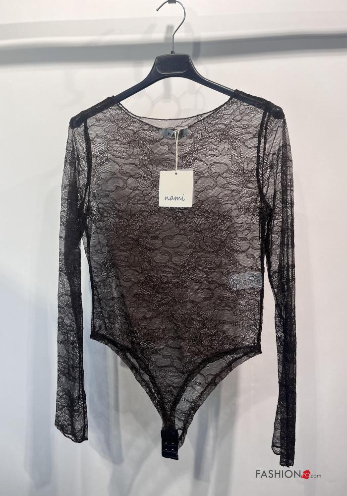 Home > Abbigliamento > T-shirts e Top > Body girocollo pizzo maniche lunghe Fantasia ricamata