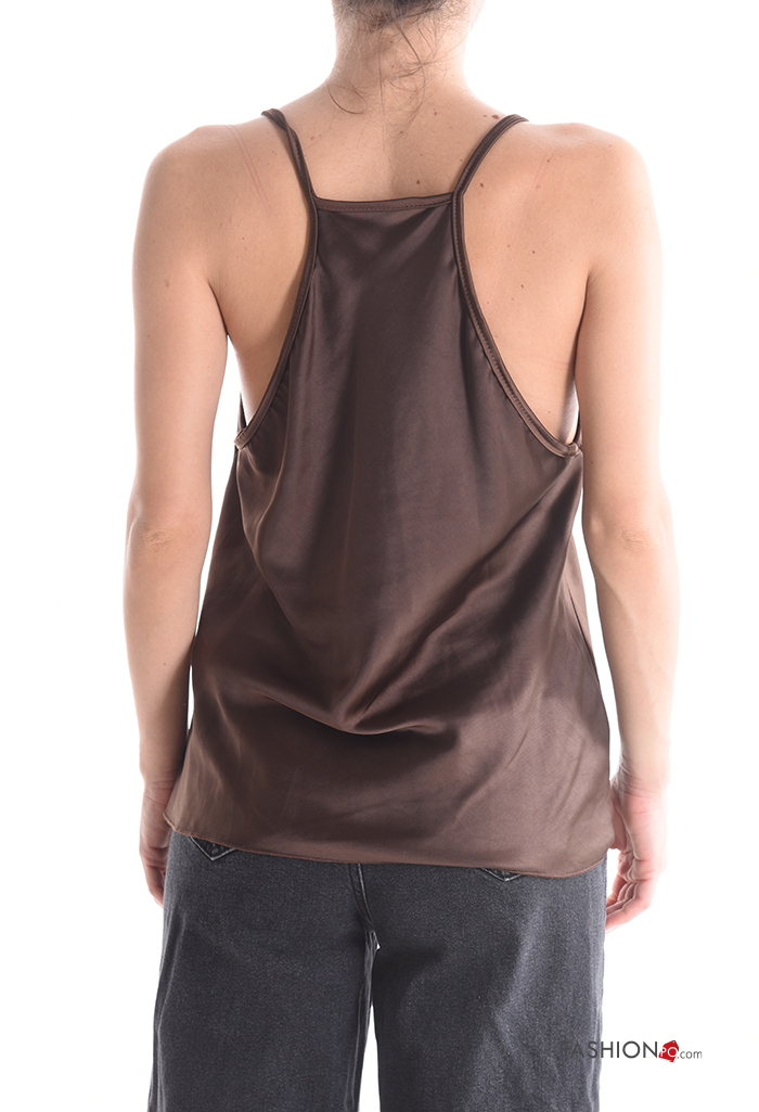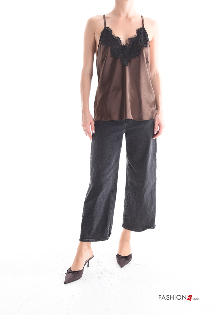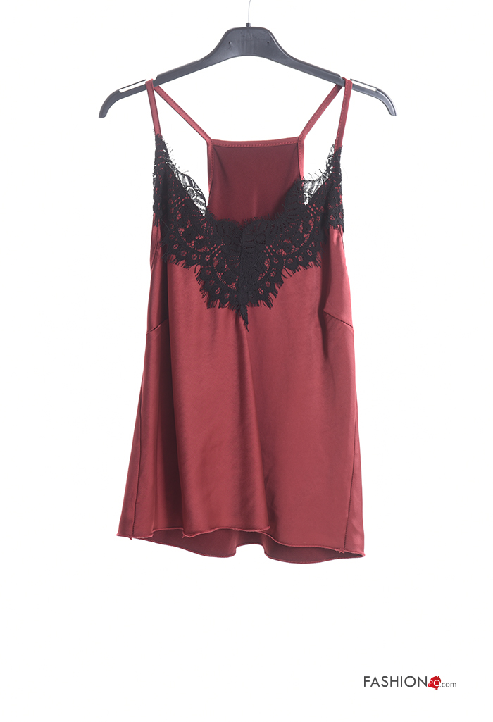 Top senza maniche regolabile pizzo raso Fantasia ricamata