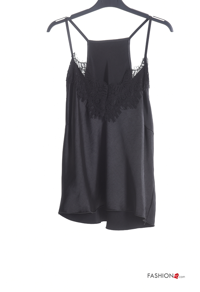 Home > Abbigliamento > T-shirts e Top > Top senza maniche regolabile pizzo raso Fantasia ricamata