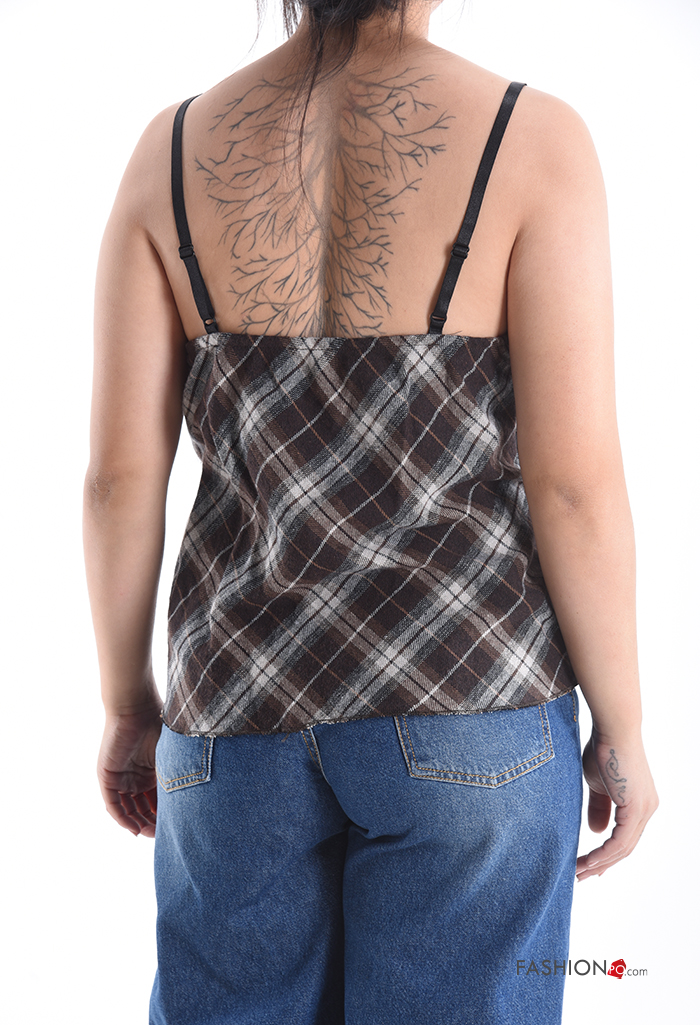 Home > Abbigliamento > T-shirts e Top > Top in Cotone senza maniche pizzo regolabile Fantasia tartan