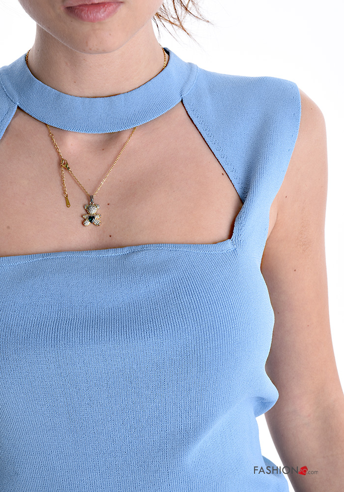 Top costine girocollo con zip
