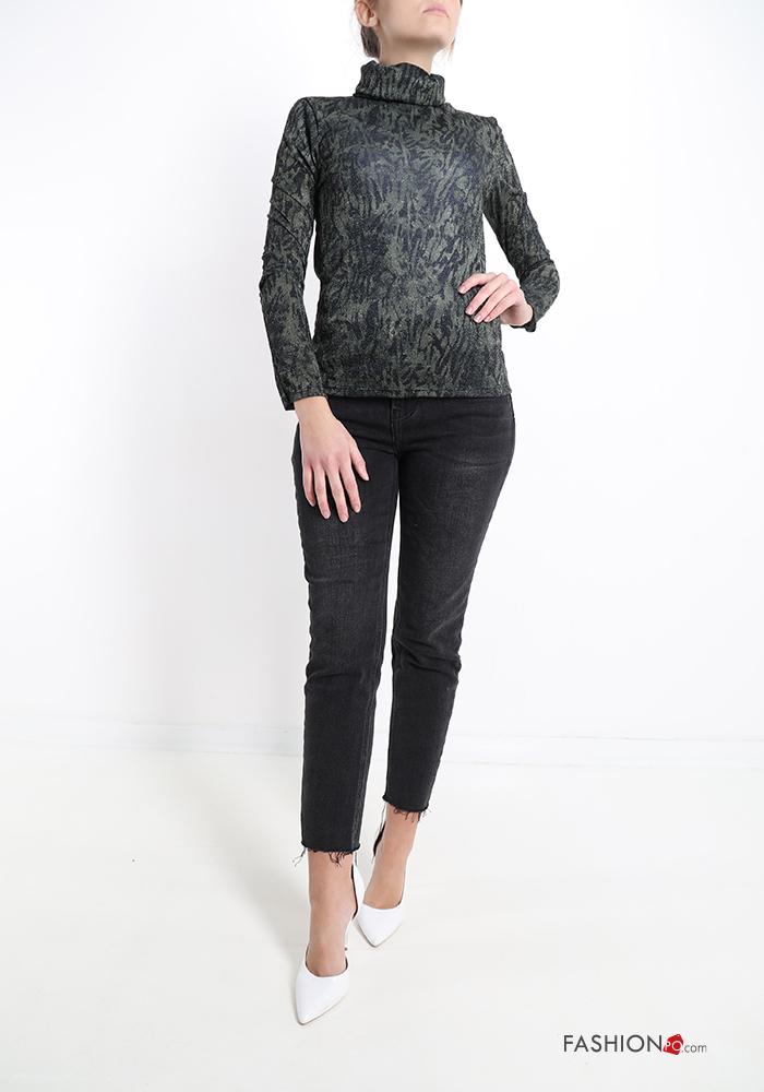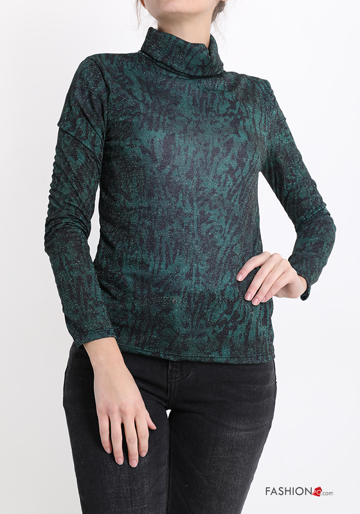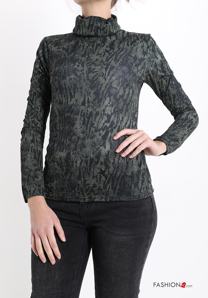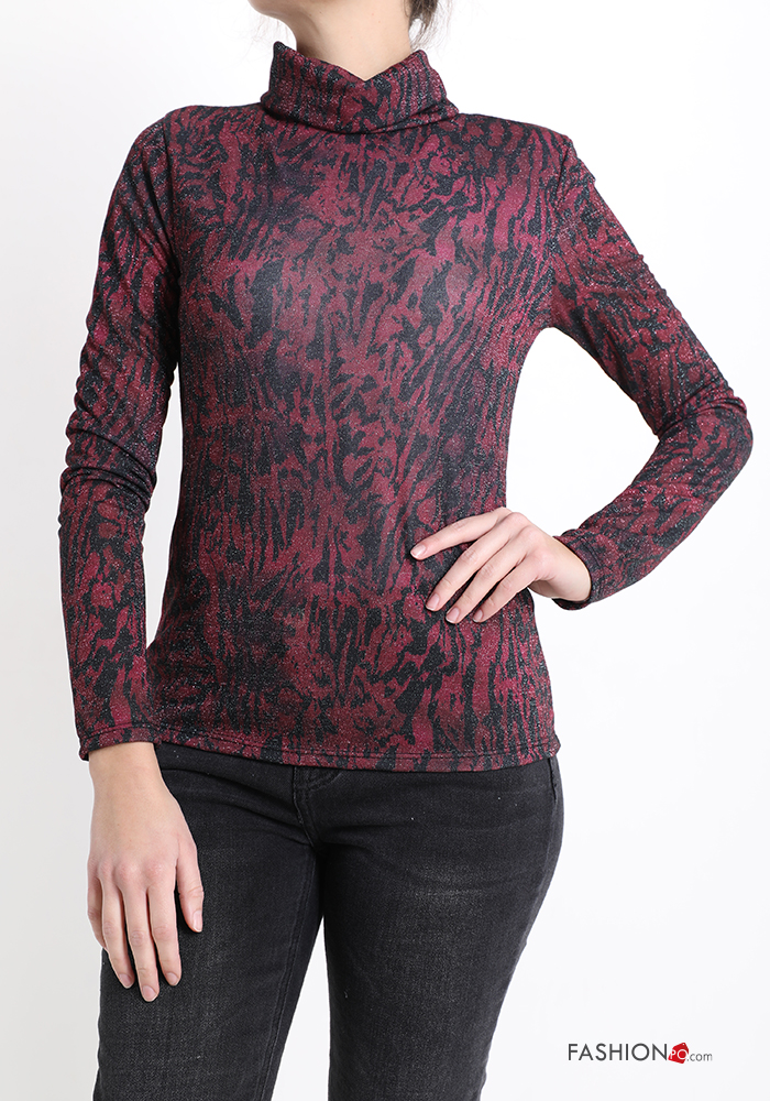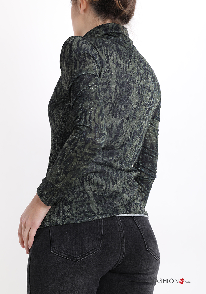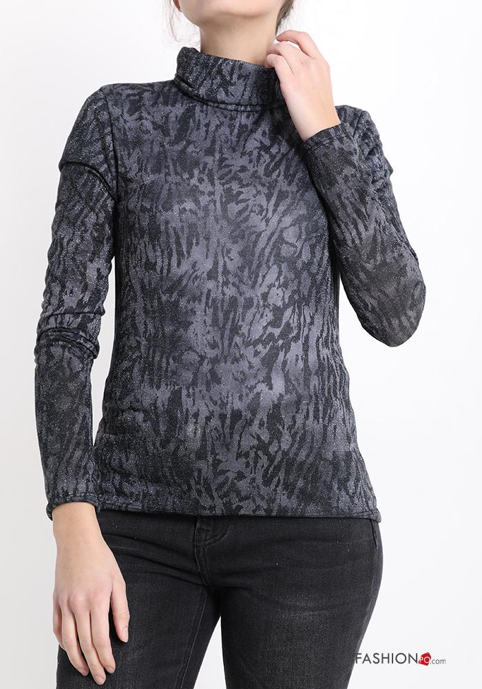 Maglietta a manica lunga Fantasia animalier a collo alto