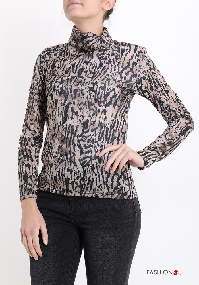 Home > Abbigliamento > T-shirts e Top > Maglietta a manica lunga Fantasia animalier a collo alto
