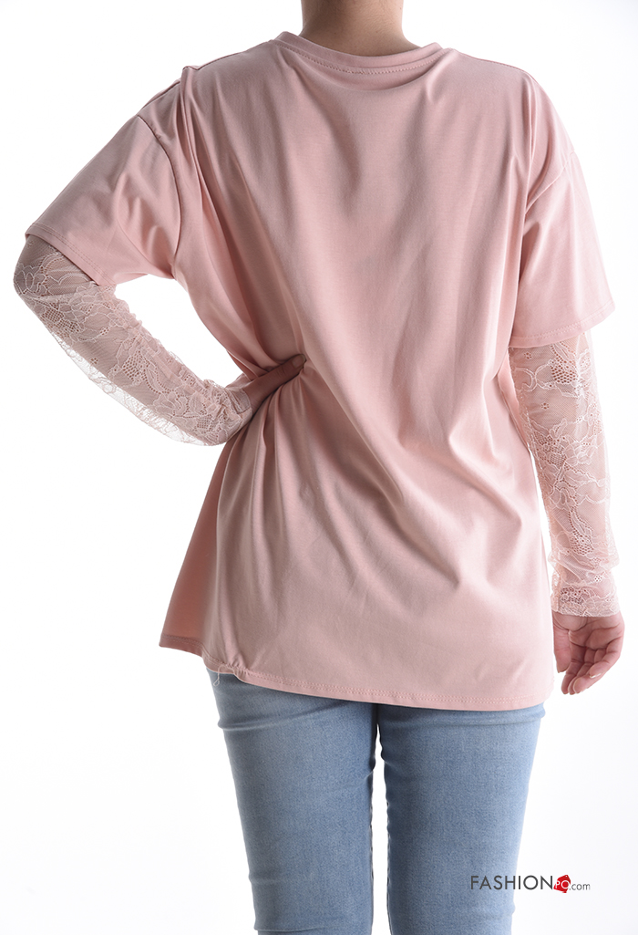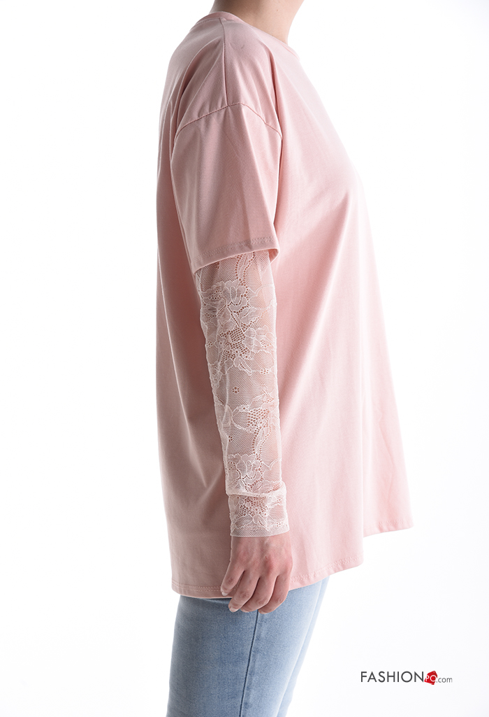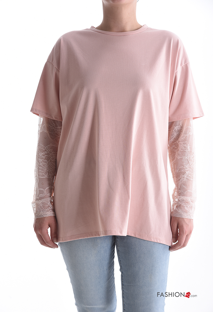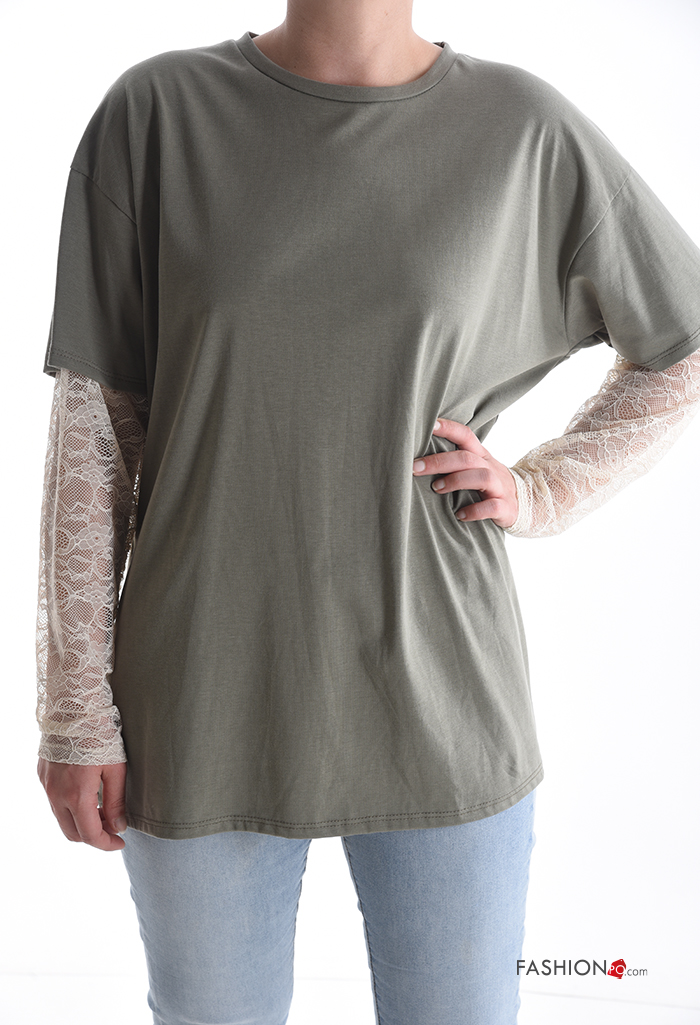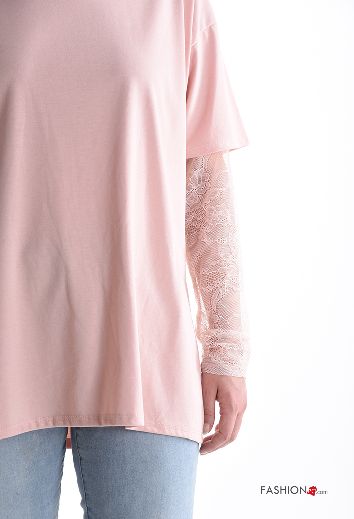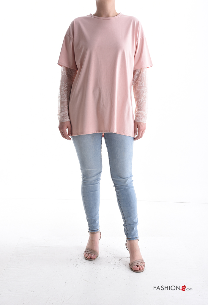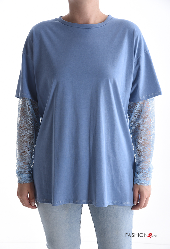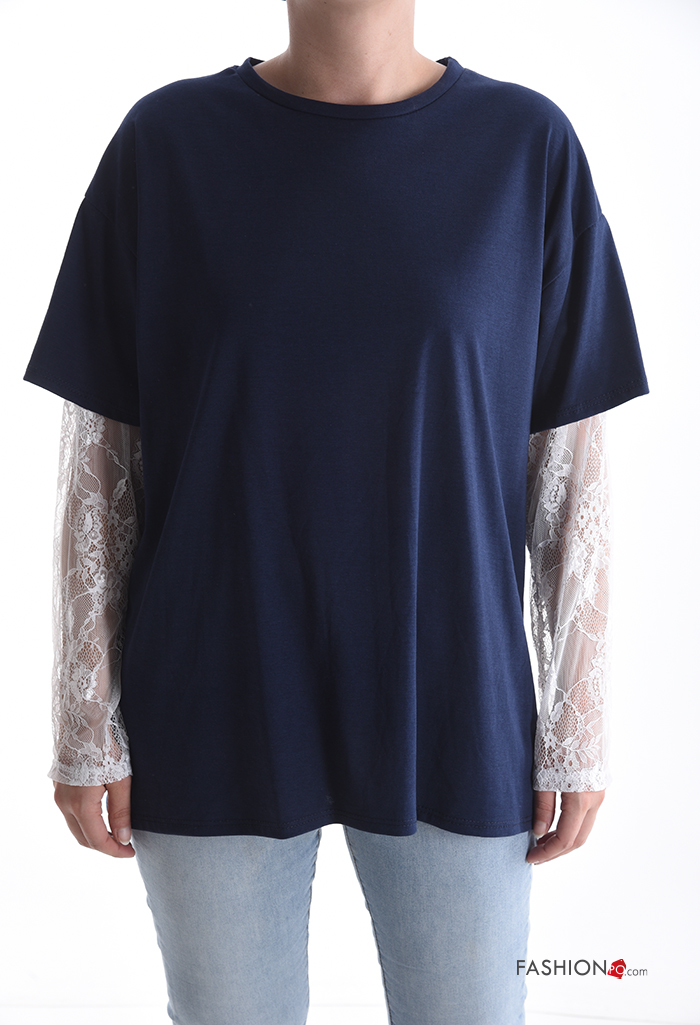 Home > Abbigliamento > T-shirts e Top > Maglietta a manica lunga in Cotone pizzo girocollo