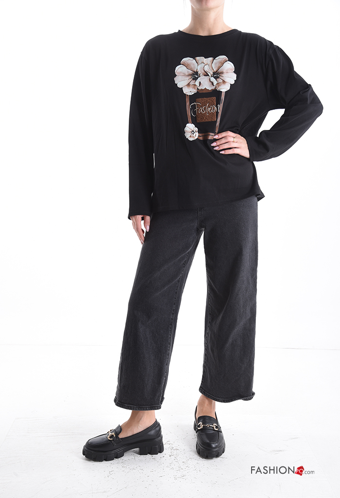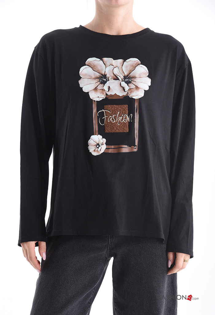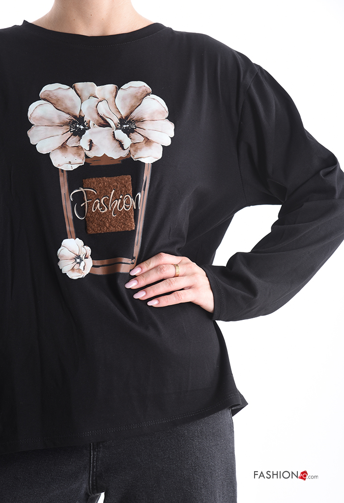 Maglietta a manica lunga in Cotone girocollo Fantasia stampata