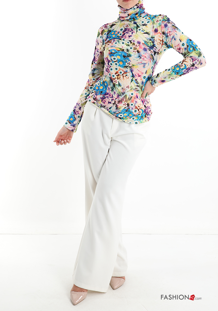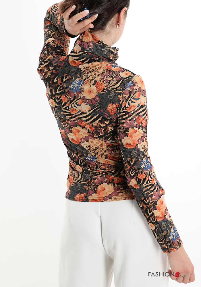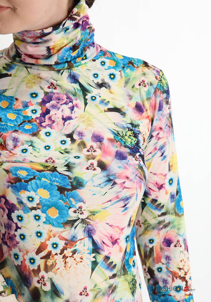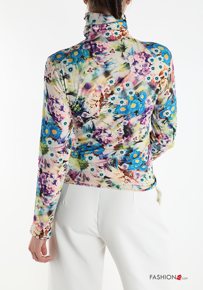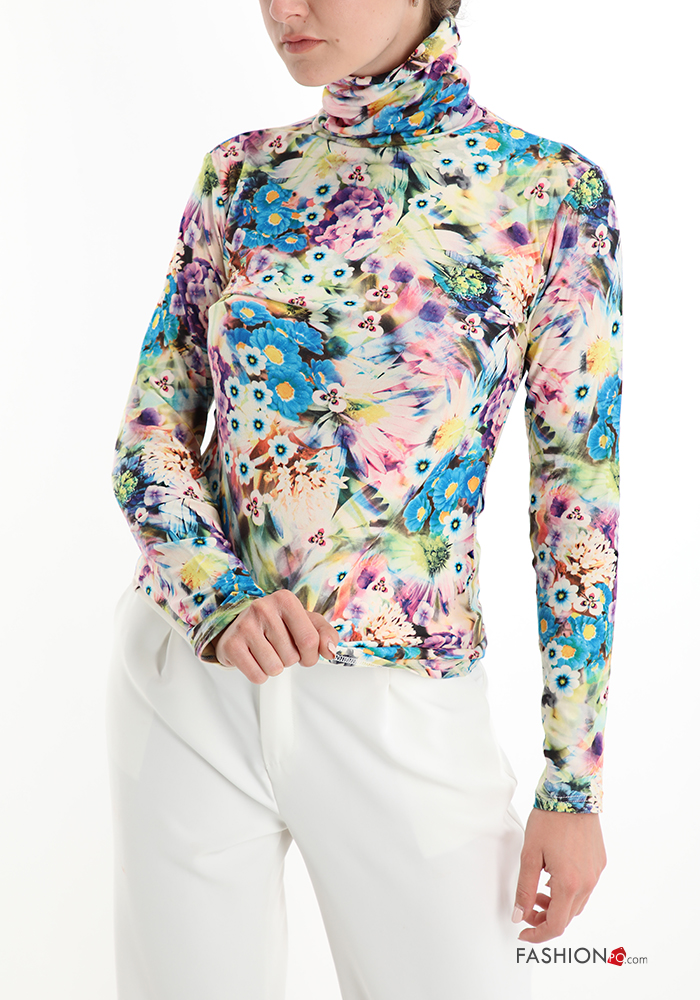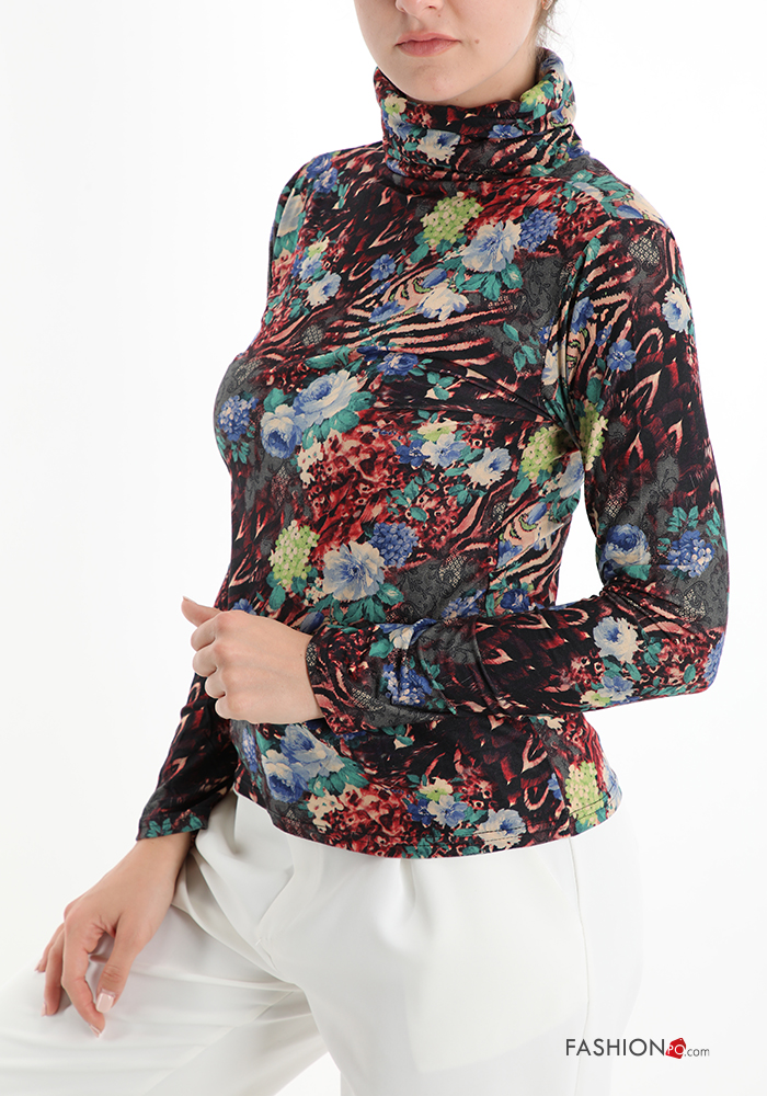 Maglietta a manica lunga Fantasia floreale a collo alto