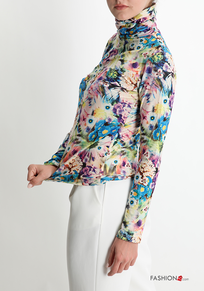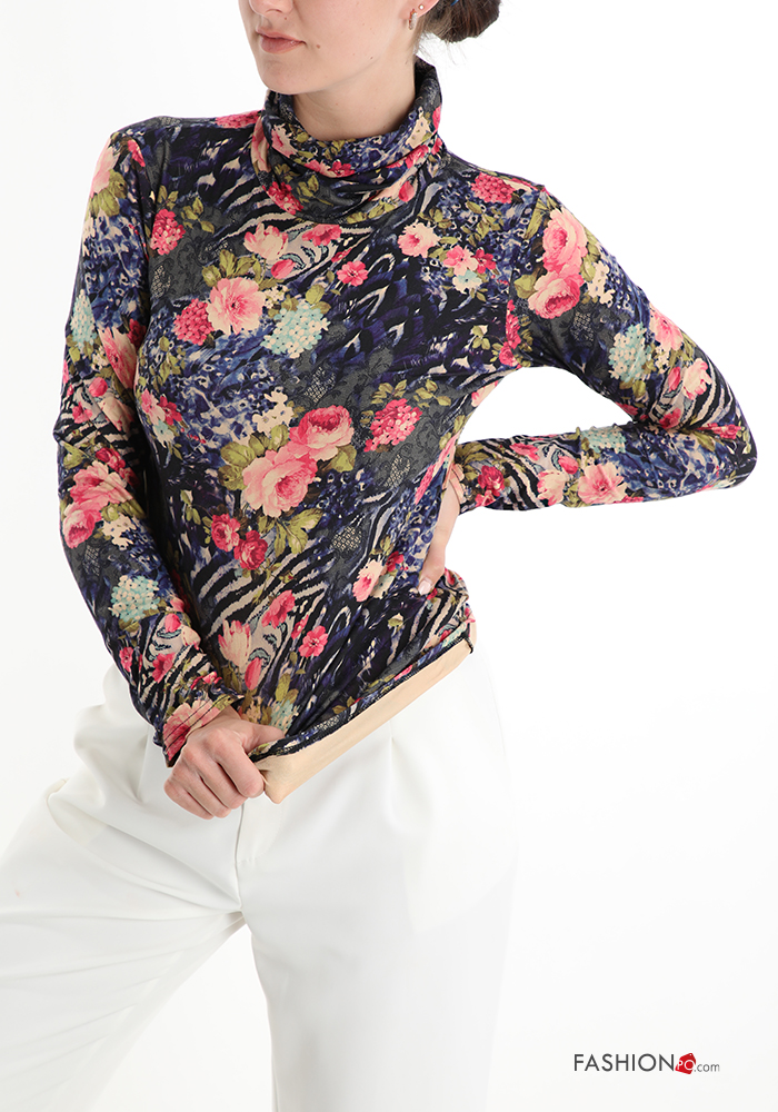Home > Abbigliamento > T-shirts e Top > Maglietta a manica lunga Fantasia floreale a collo alto