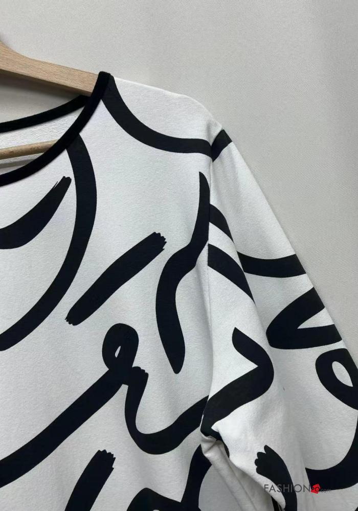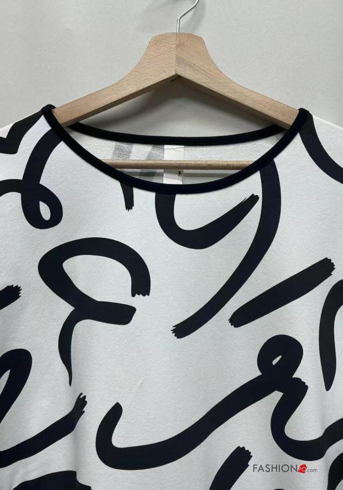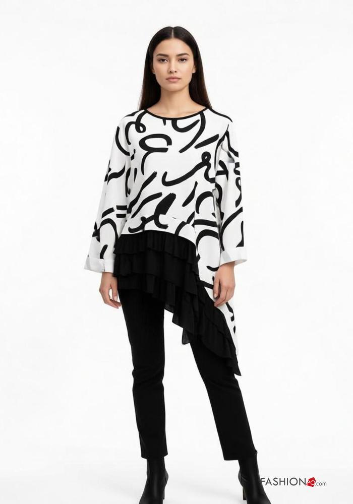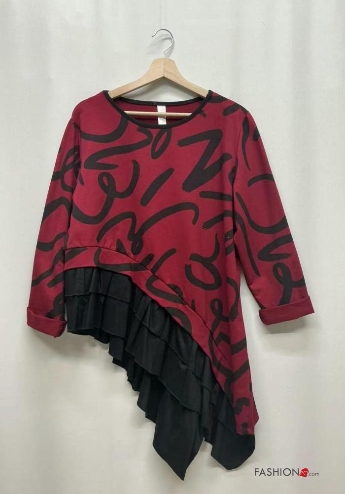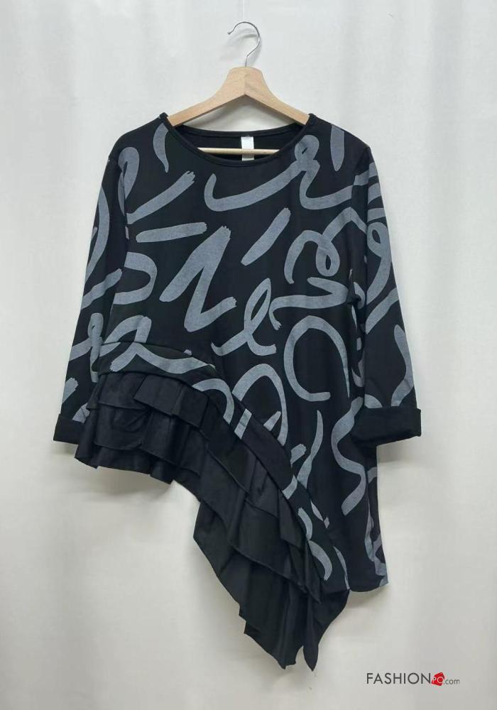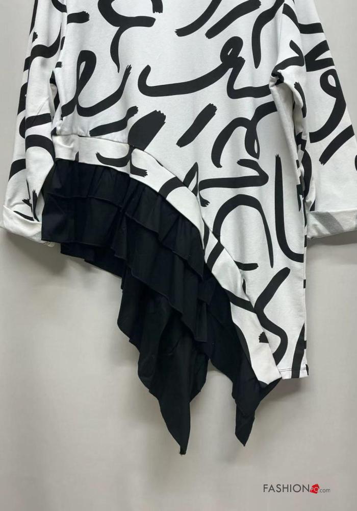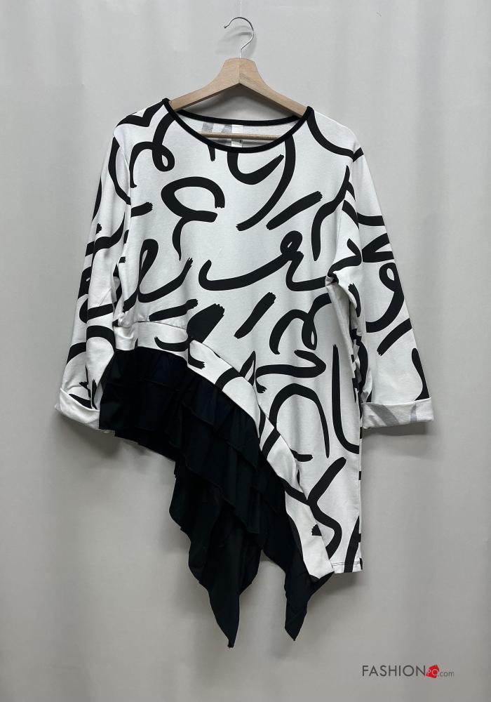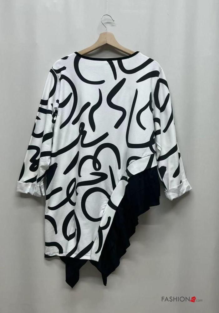 Maglietta a manica lunga in Cotone asimmetrico girocollo Fantasia astratta
