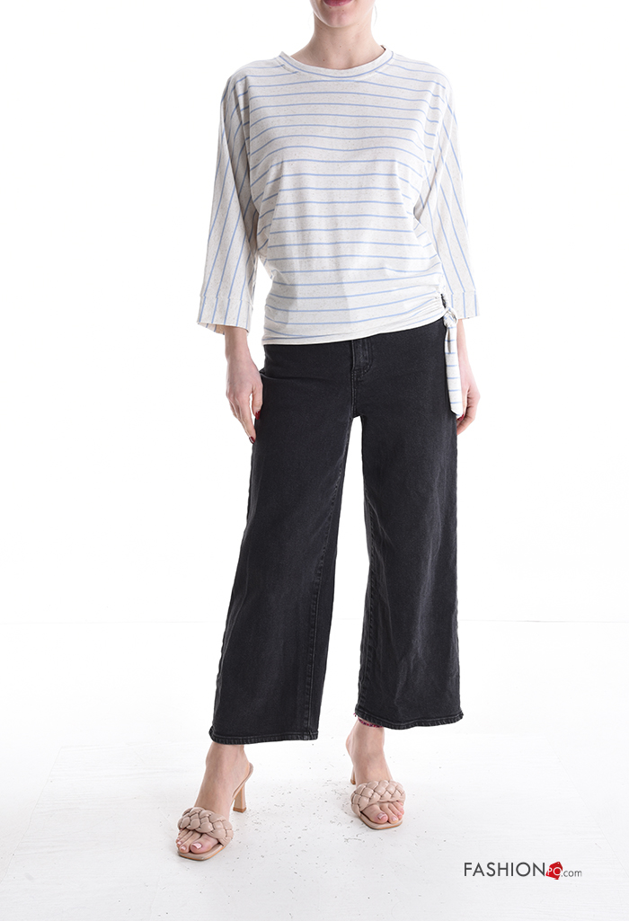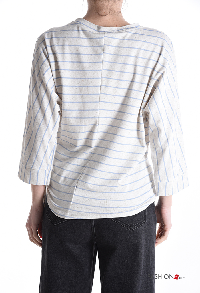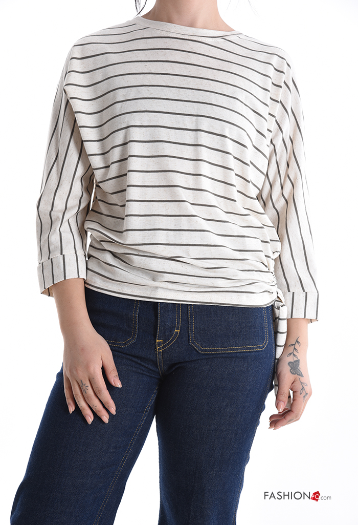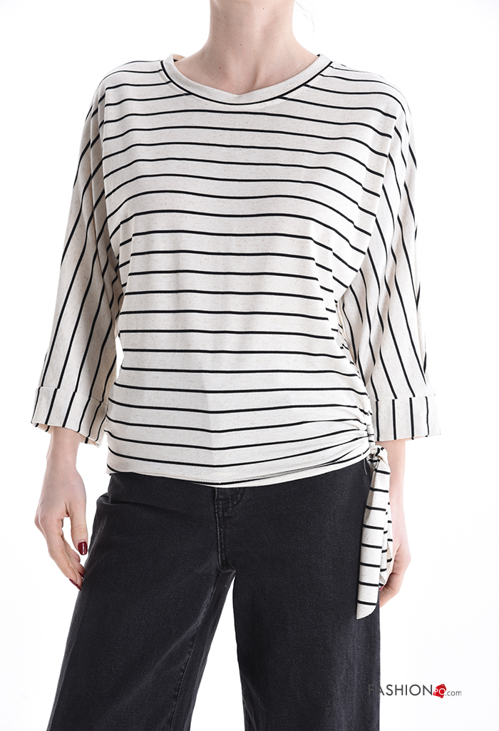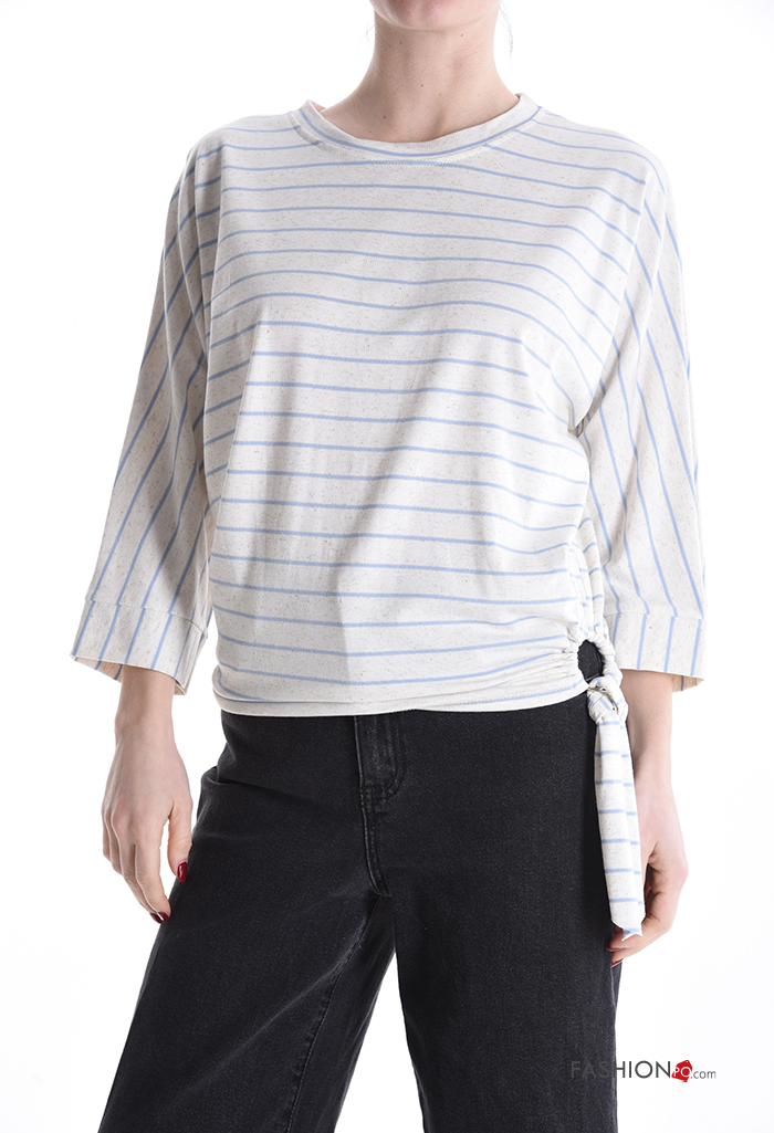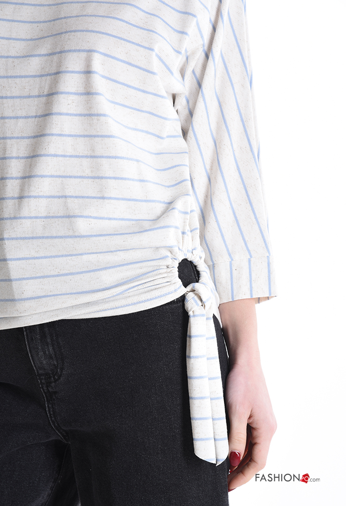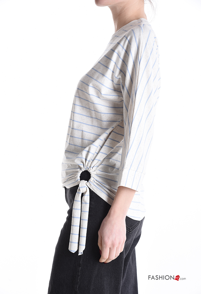 Home > Abbigliamento > T-shirts e Top > Maglietta a manica lunga in Lino girocollo Fantasia righe con nodo