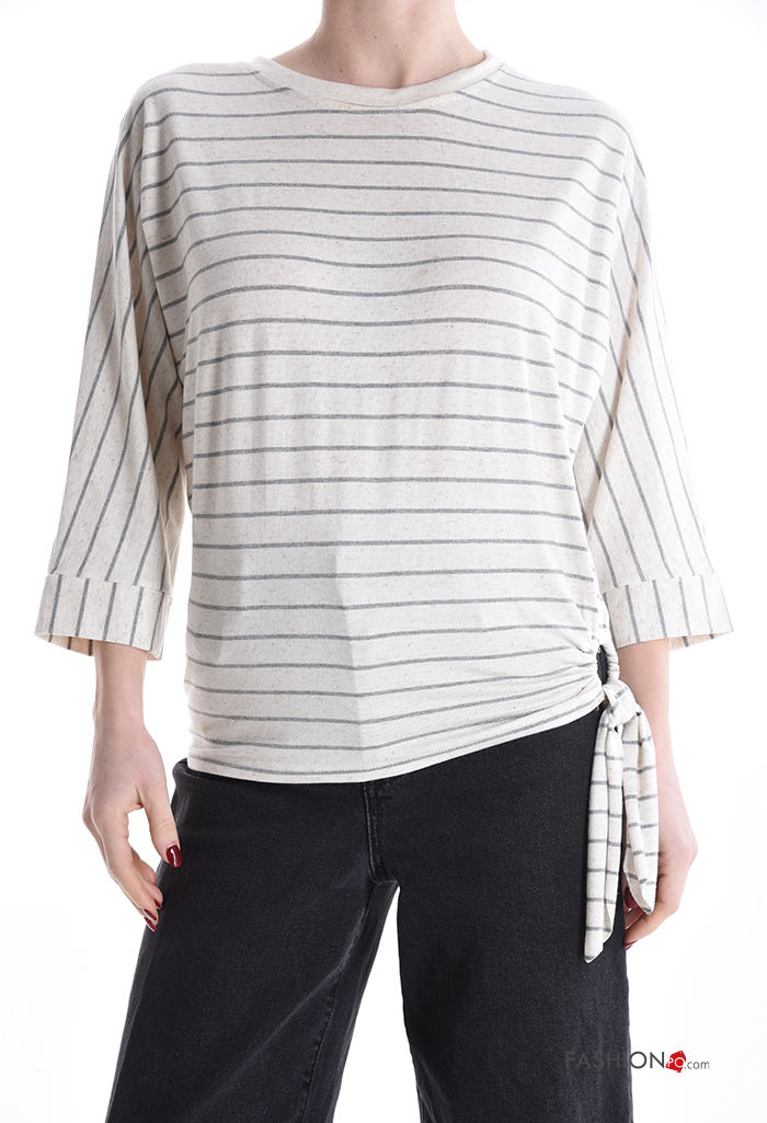Maglietta a manica lunga in Lino girocollo Fantasia righe con nodo
