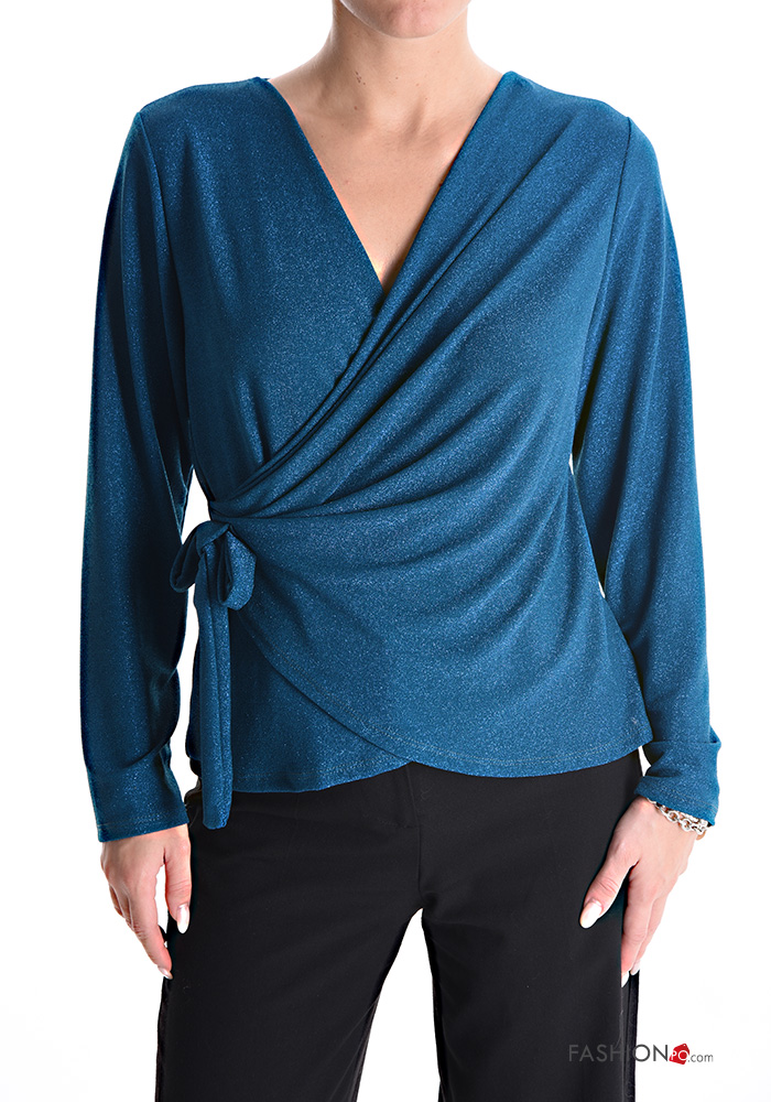 Maglietta a manica lunga lurex con fiocco scollo a V
