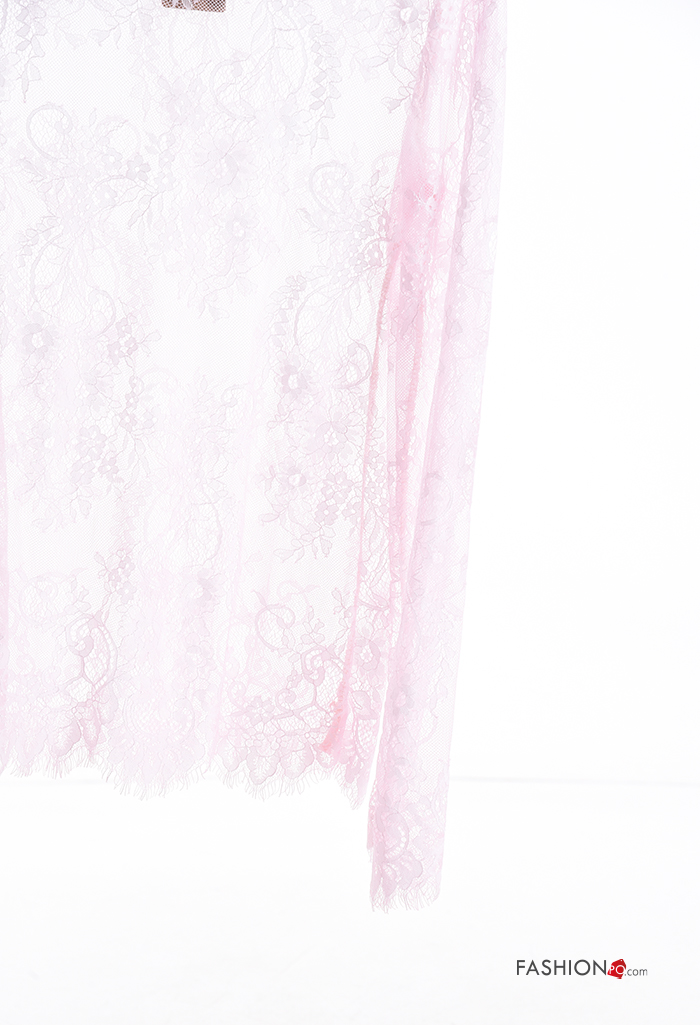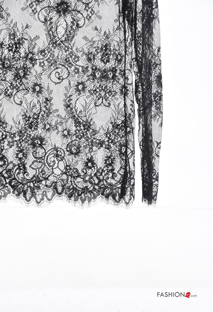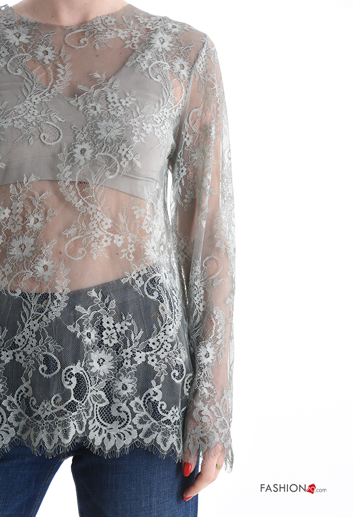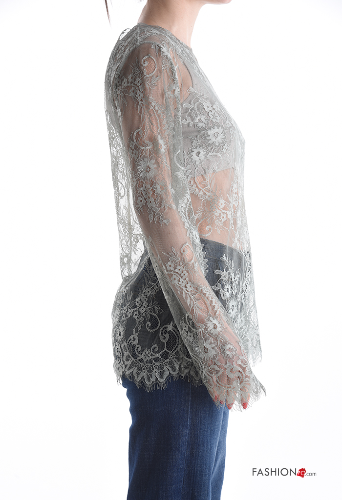Maglietta a manica lunga pizzo girocollo Fantasia ricamata