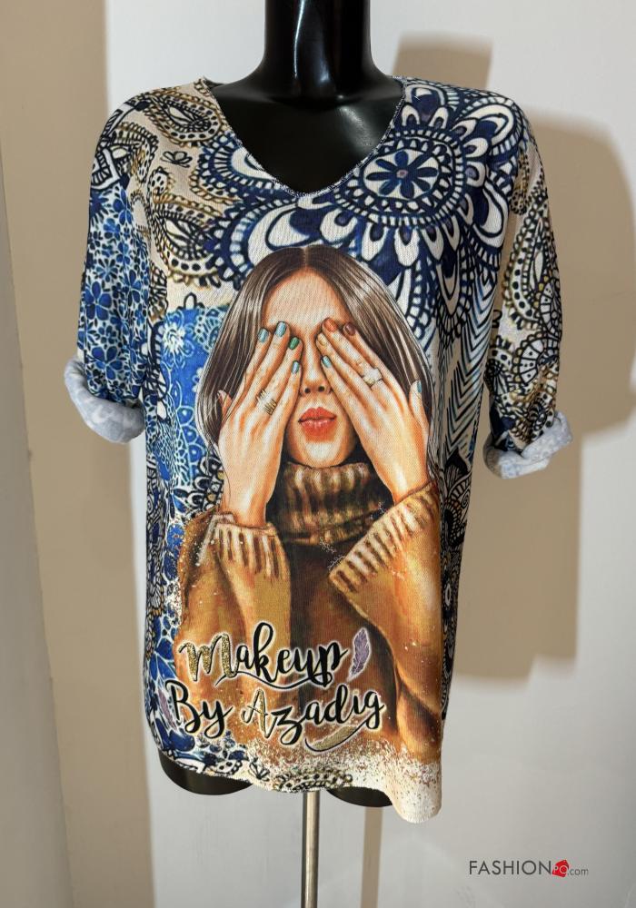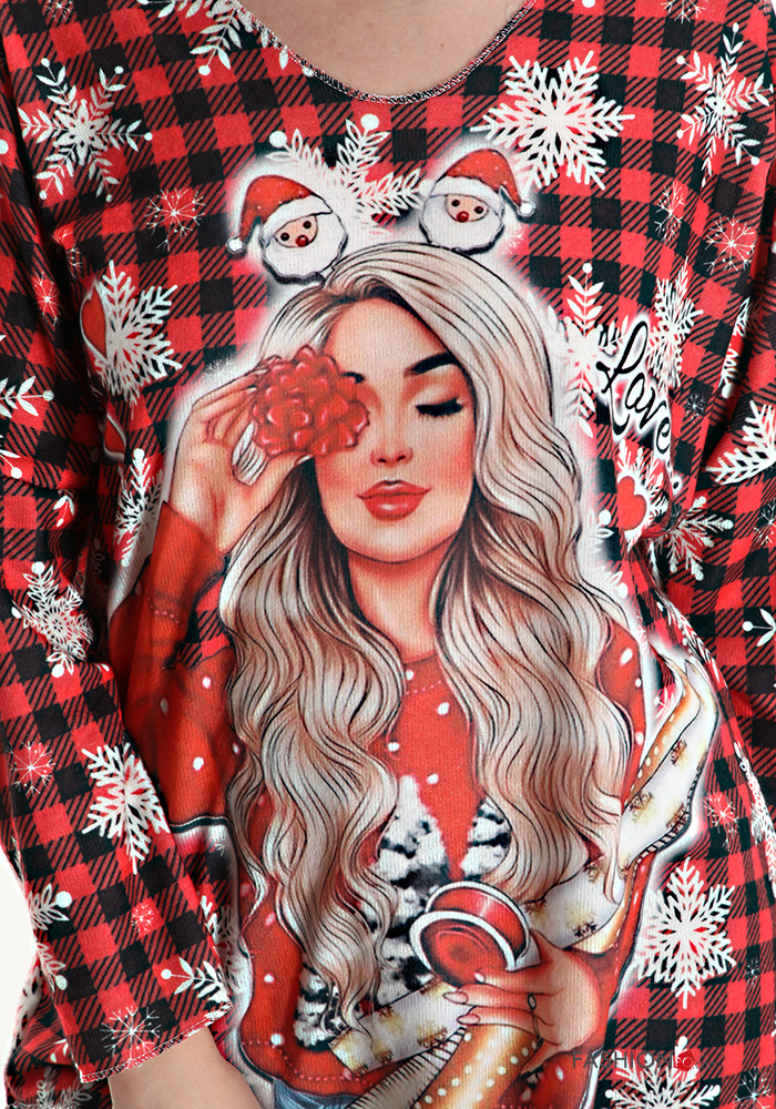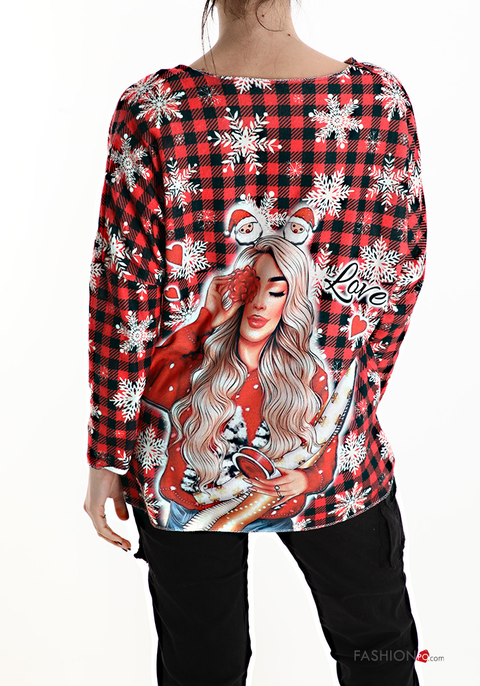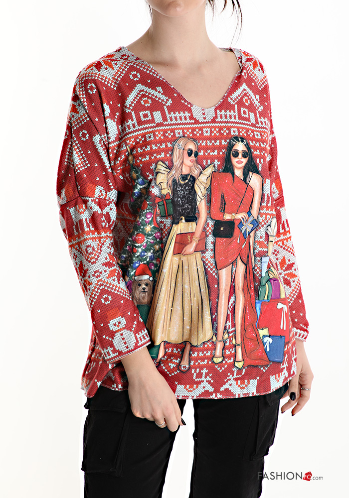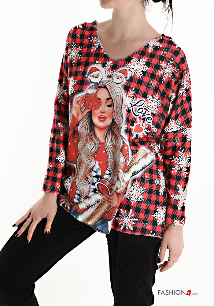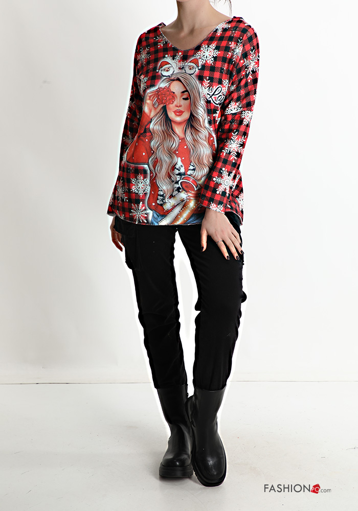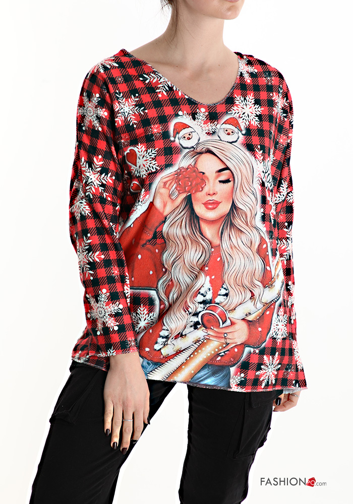 Home > Abbigliamento > T-shirts e Top > Maglietta a manica lunga Fantasia natalizia scollo a V