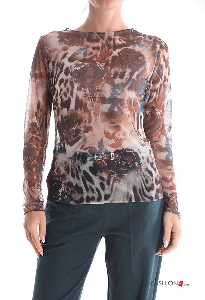 Home > Abbigliamento > T-shirts e Top > Maglietta a manica lunga tulle girocollo Fantasia mista