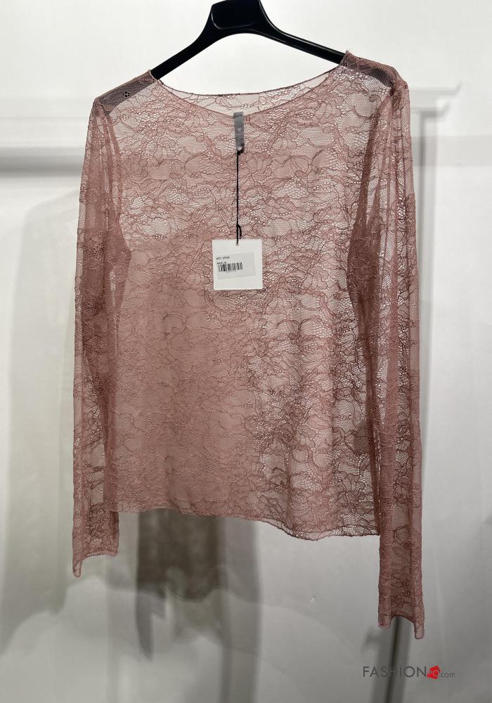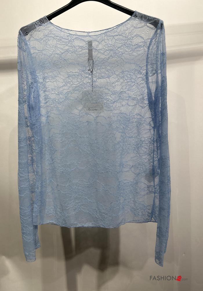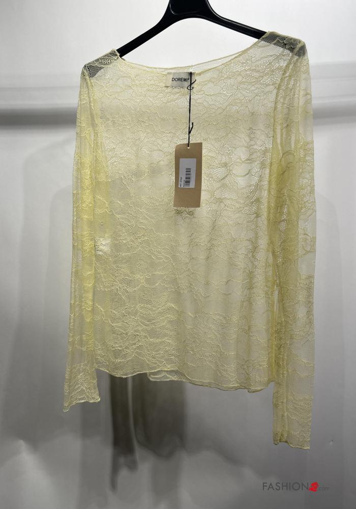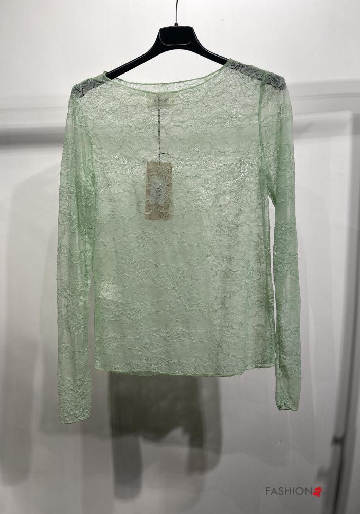 Home > Abbigliamento > T-shirts e Top > Maglietta a manica lunga pizzo girocollo Fantasia ricamata