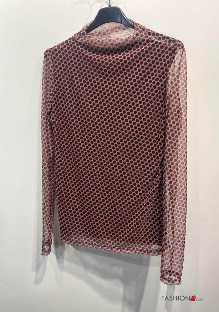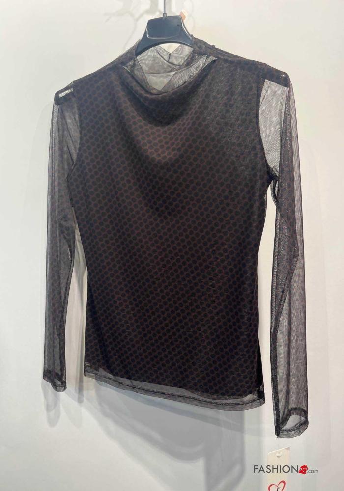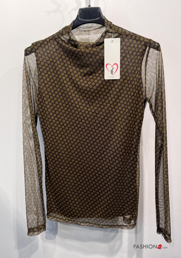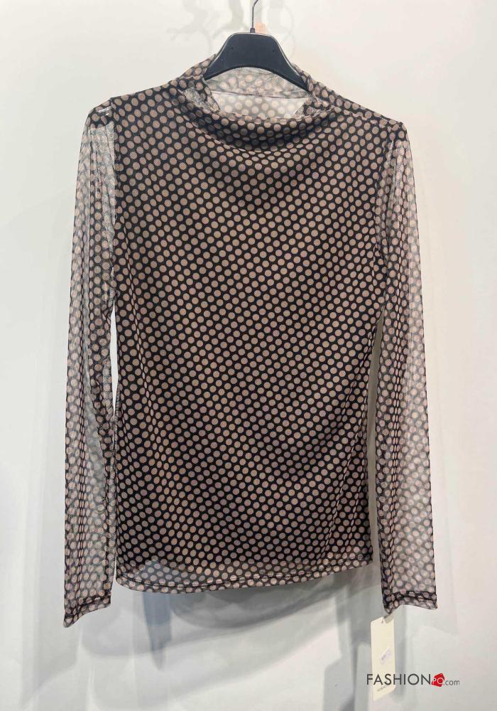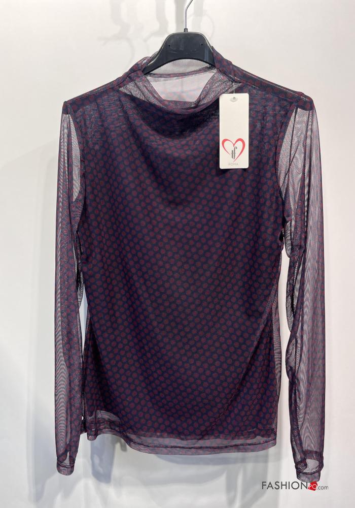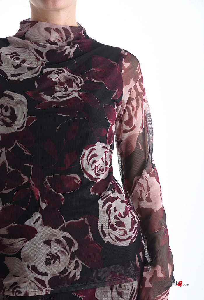 Maglietta a manica lunga tulle Fantasia floreale a collo alto