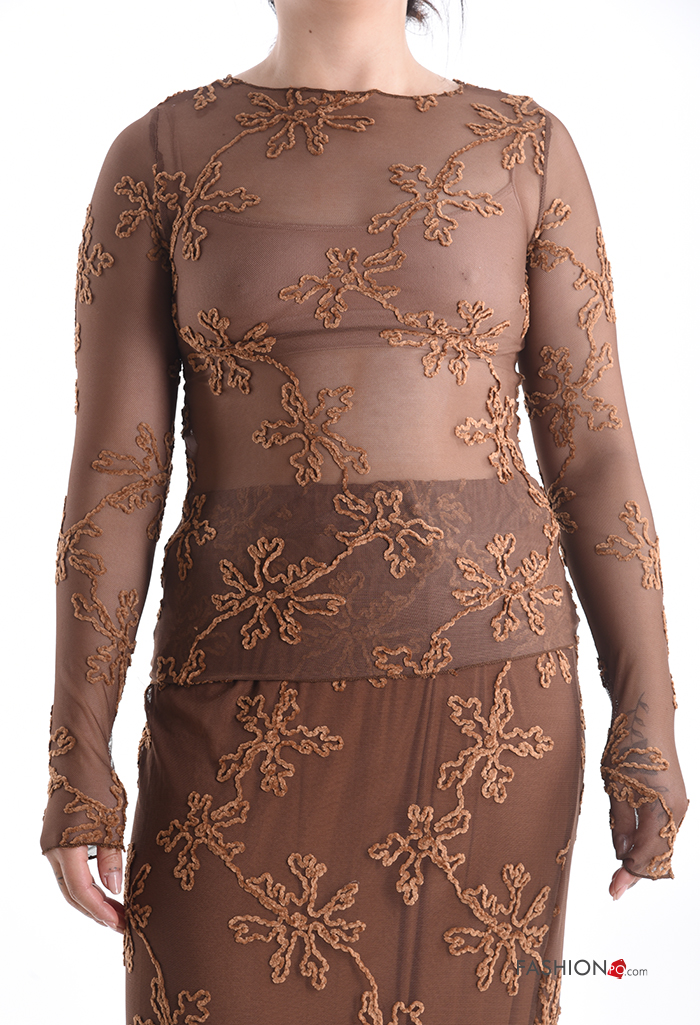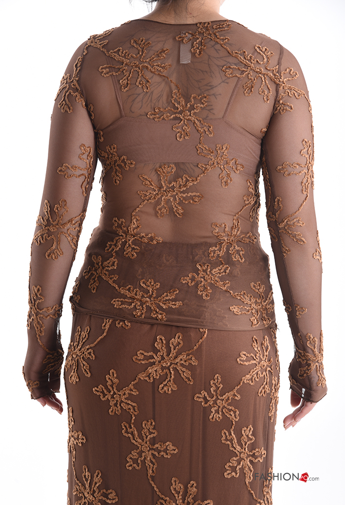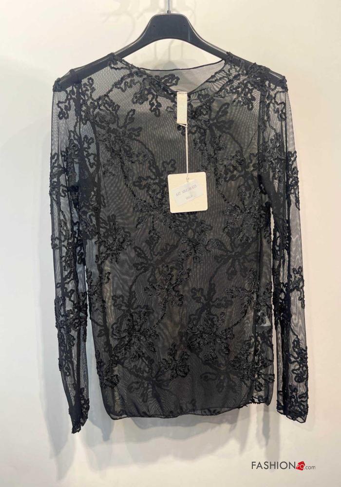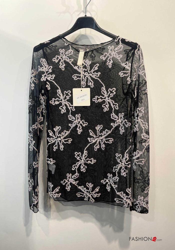 Home > Abbigliamento > T-shirts e Top > Maglietta a manica lunga tulle girocollo Fantasia ricamata