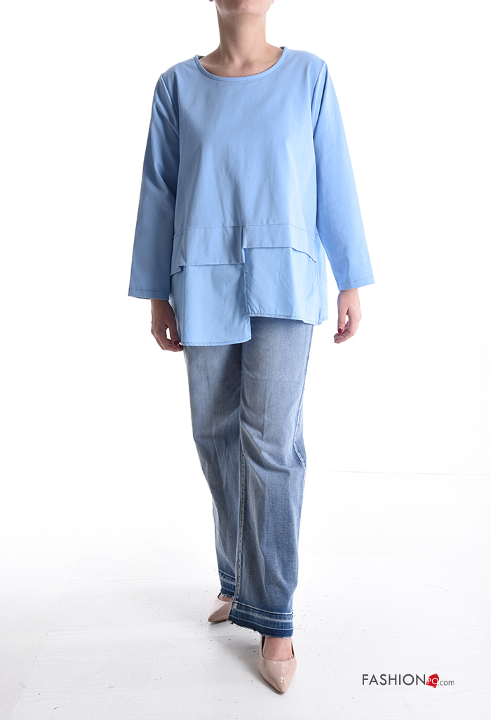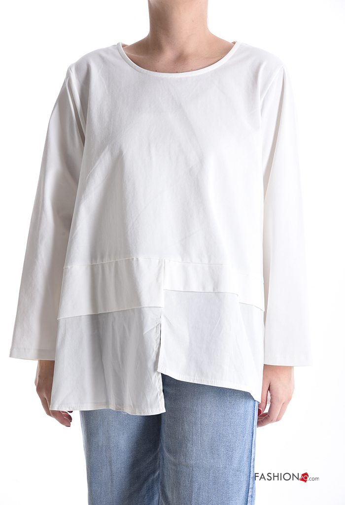 Maglietta a manica lunga in Cotone asimmetrico girocollo