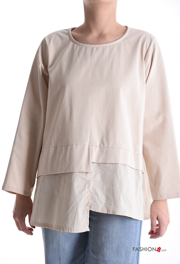 Home > Abbigliamento > T-shirts e Top > Maglietta a manica lunga in Cotone asimmetrico girocollo