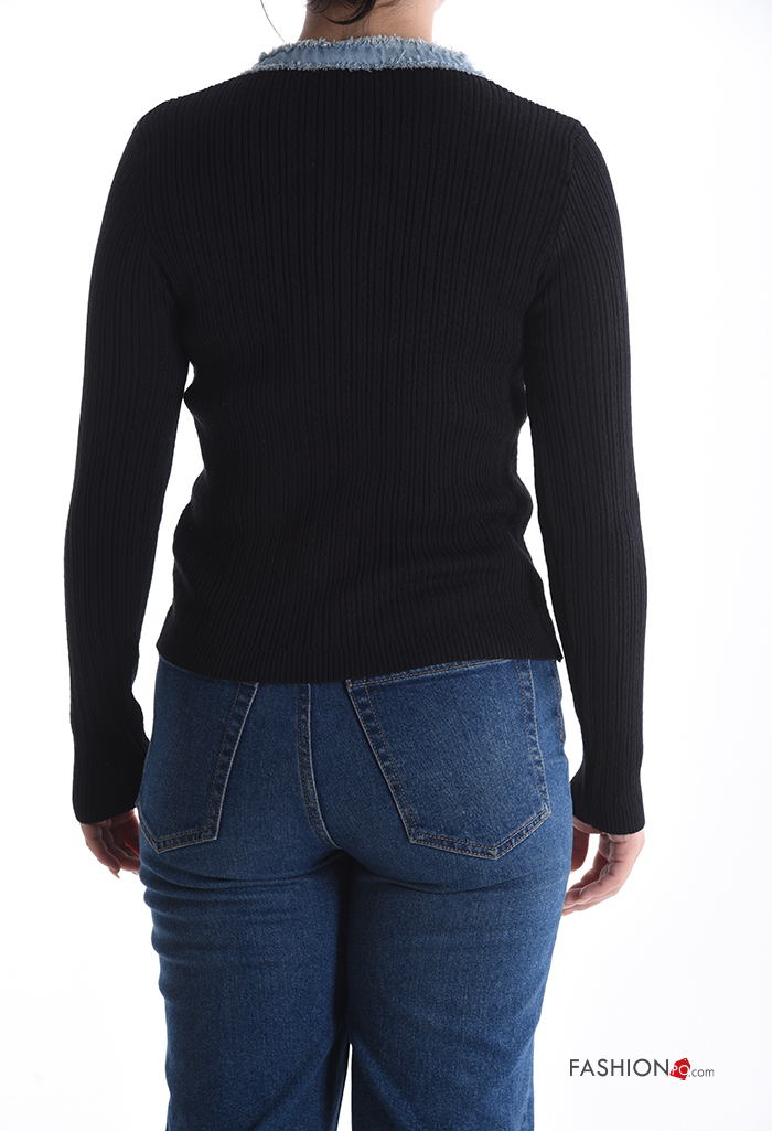 Maglietta a manica lunga in Cotone girocollo denim costine con bottoni