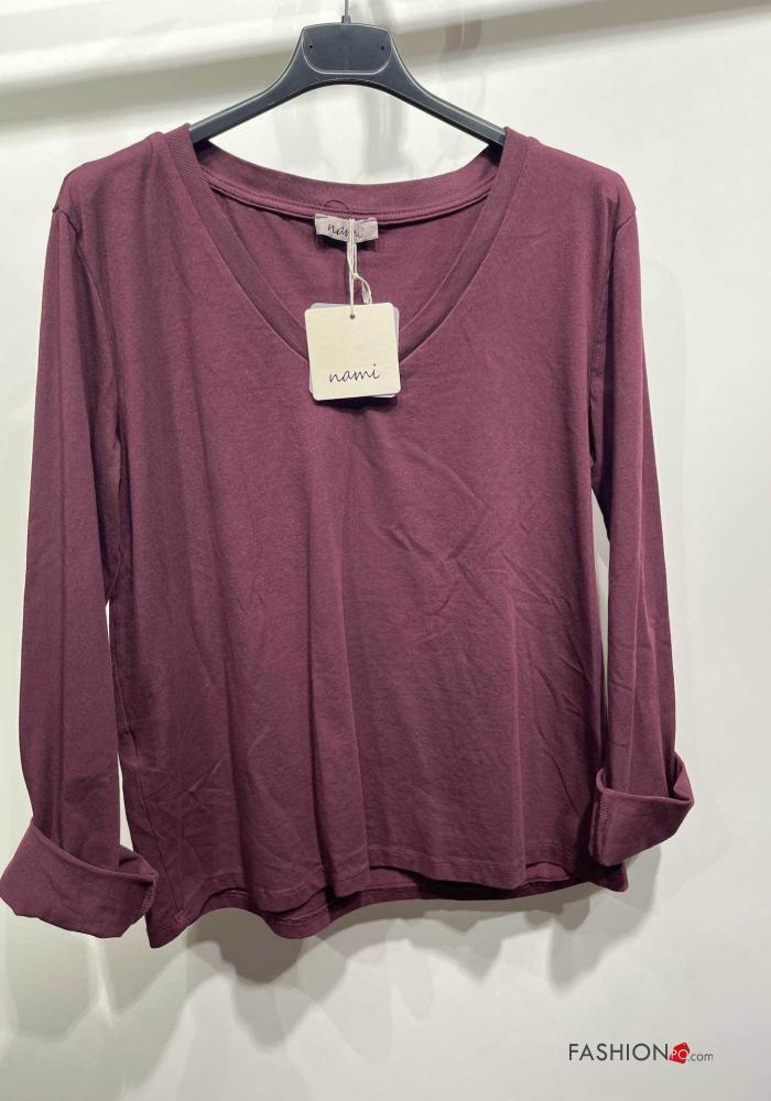 Maglietta a manica lunga in Cotone scollo a V