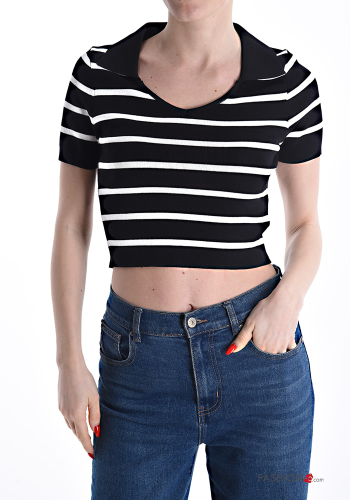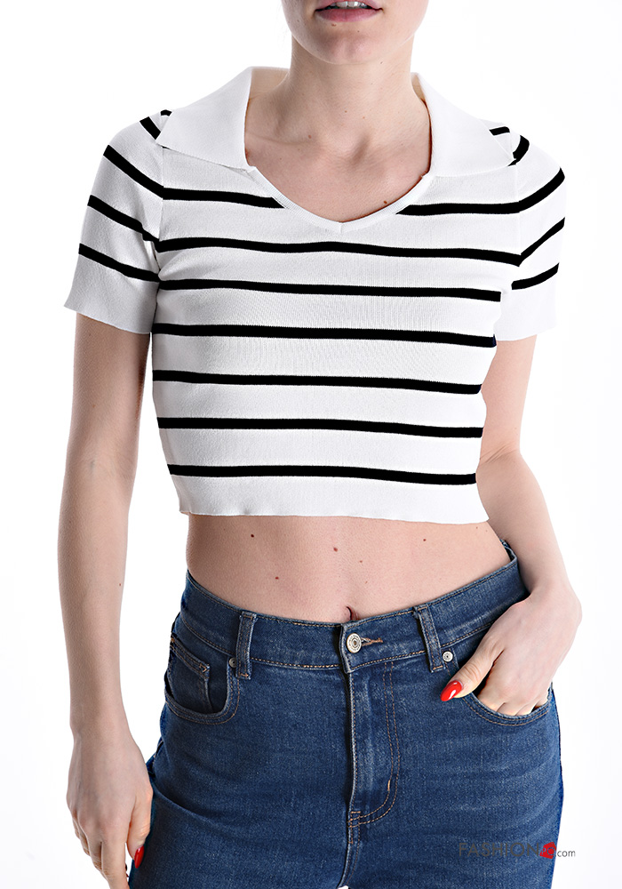 Home > Abbigliamento > T-shirts e Top > Top corto maniche corte con colletto Fantasia righe
