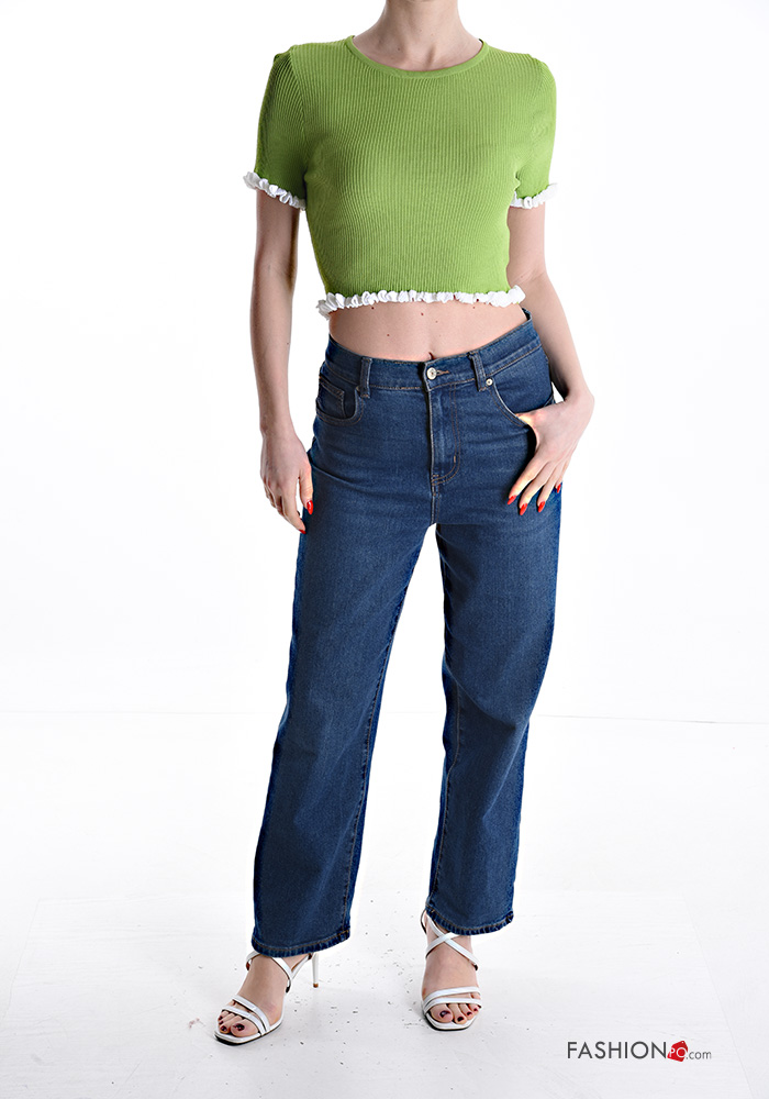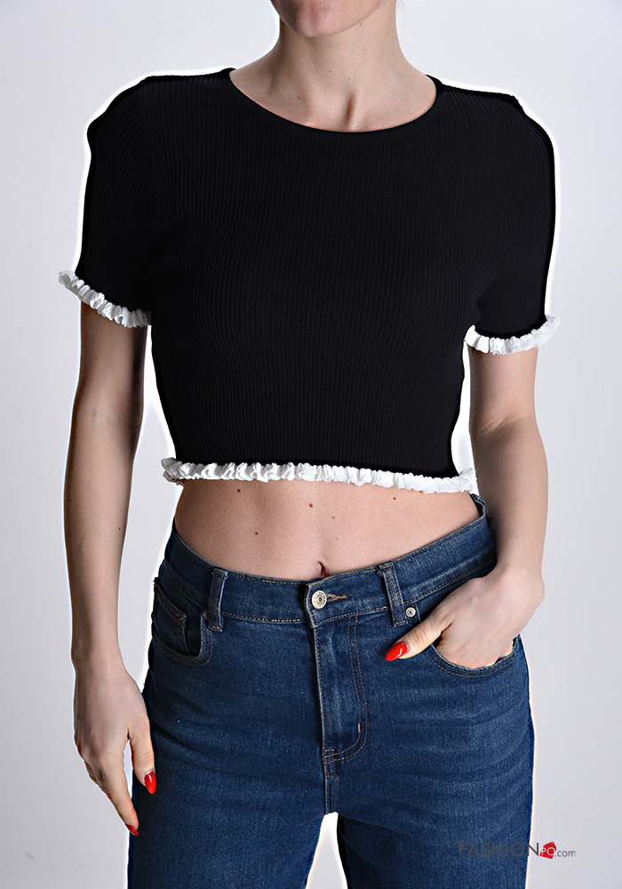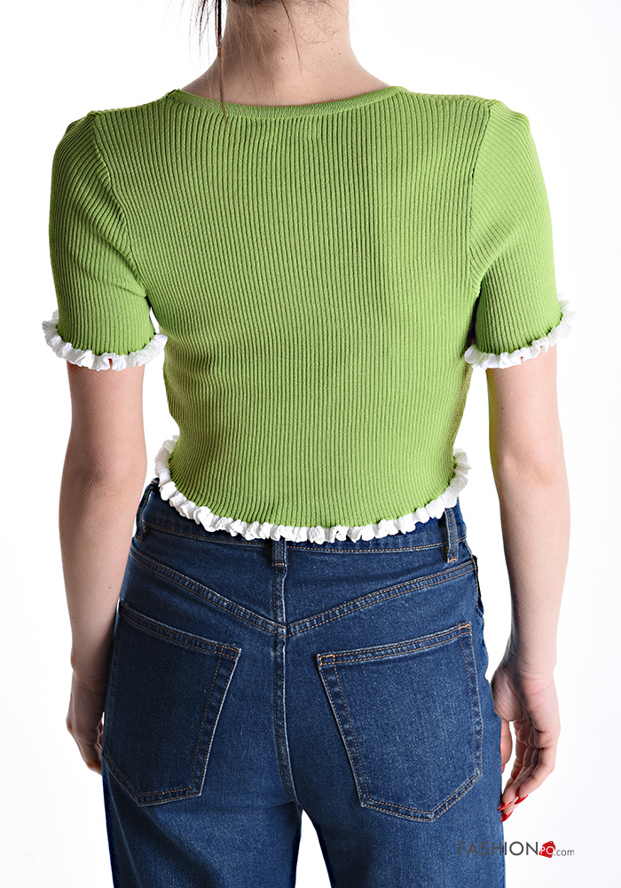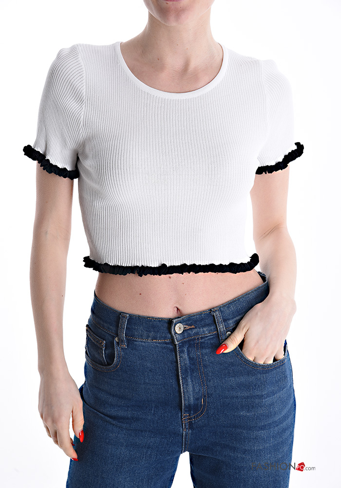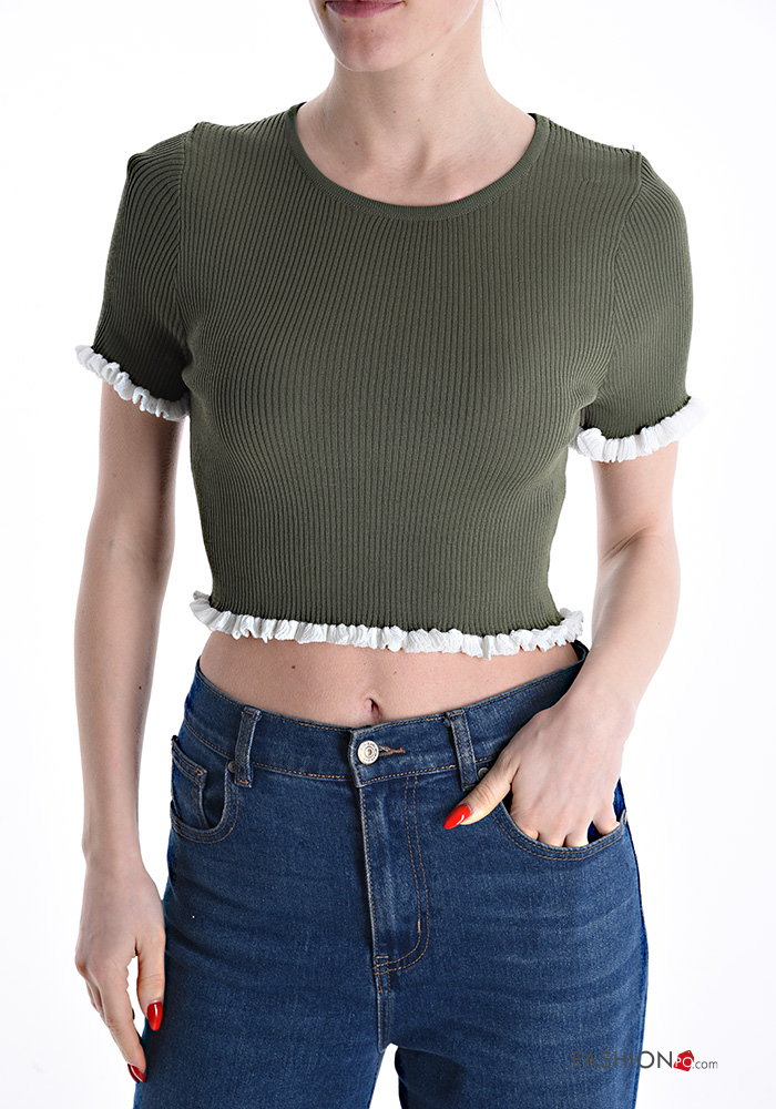 Top costine girocollo corto maniche corte
