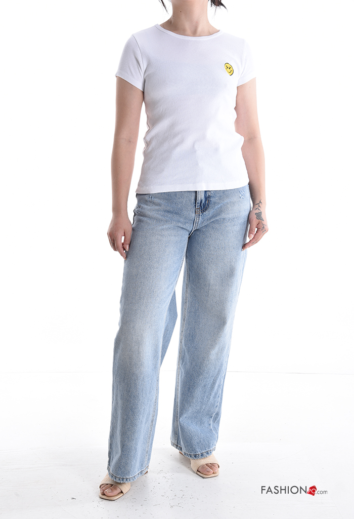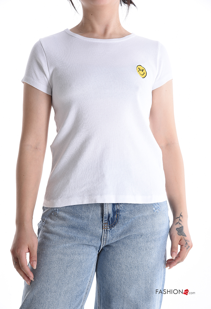 T-shirt in Cotone maniche corte girocollo Fantasia ricamata