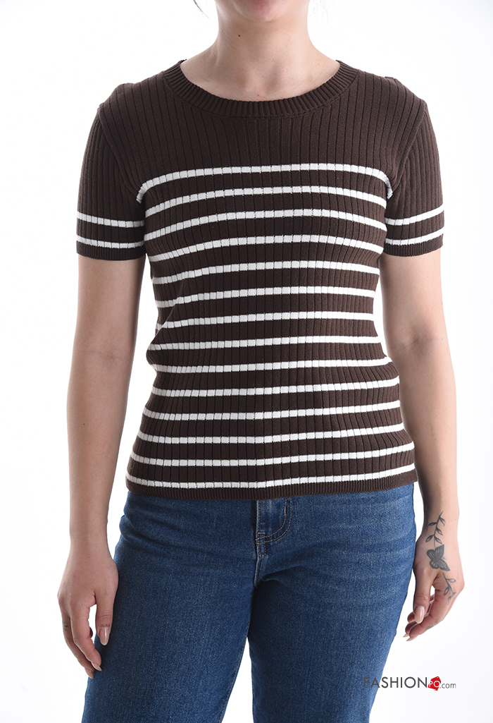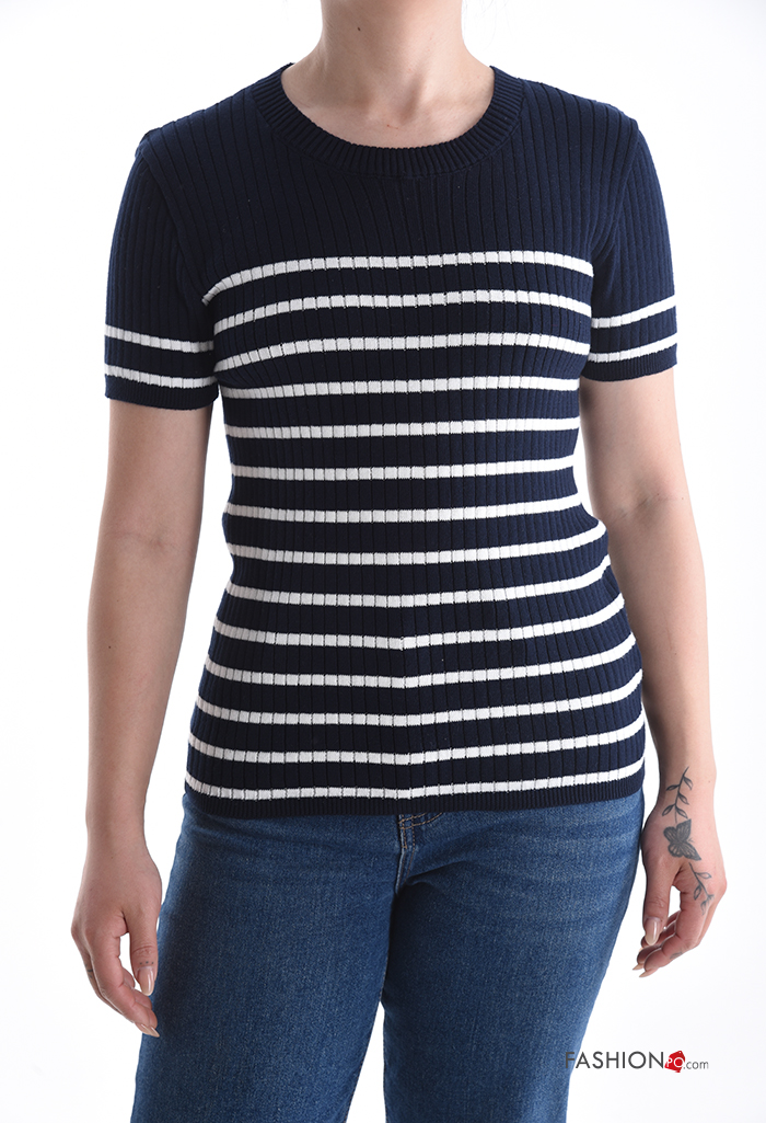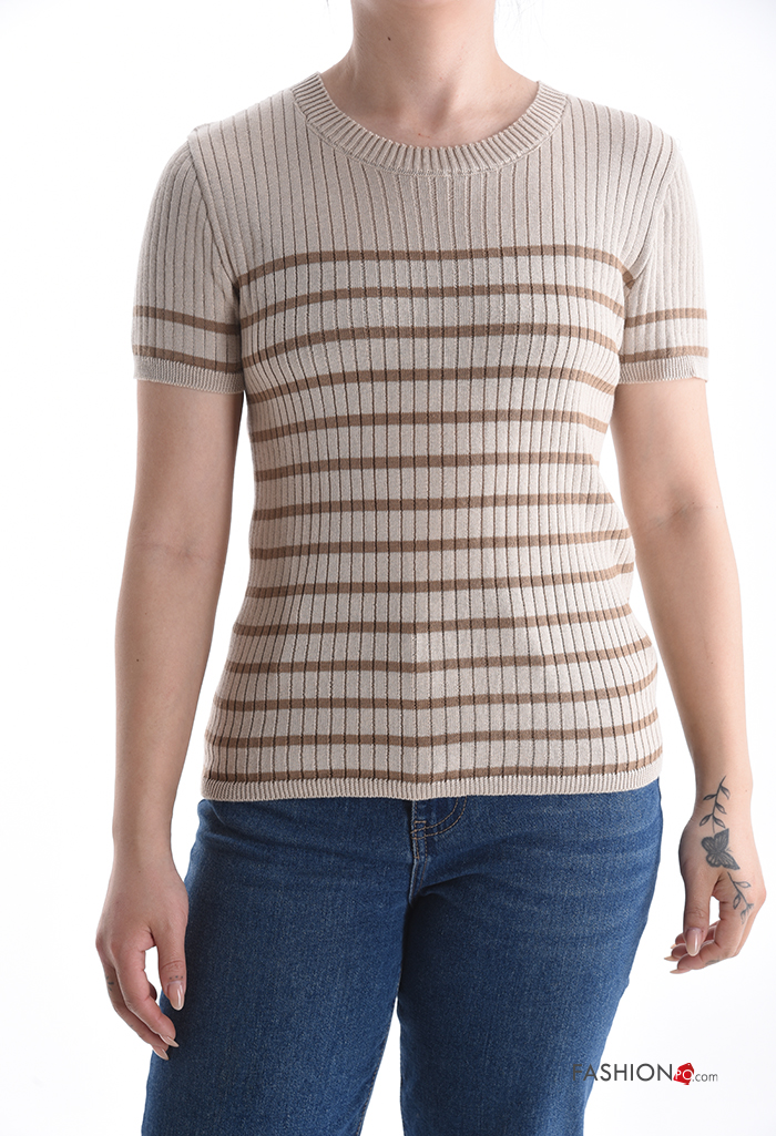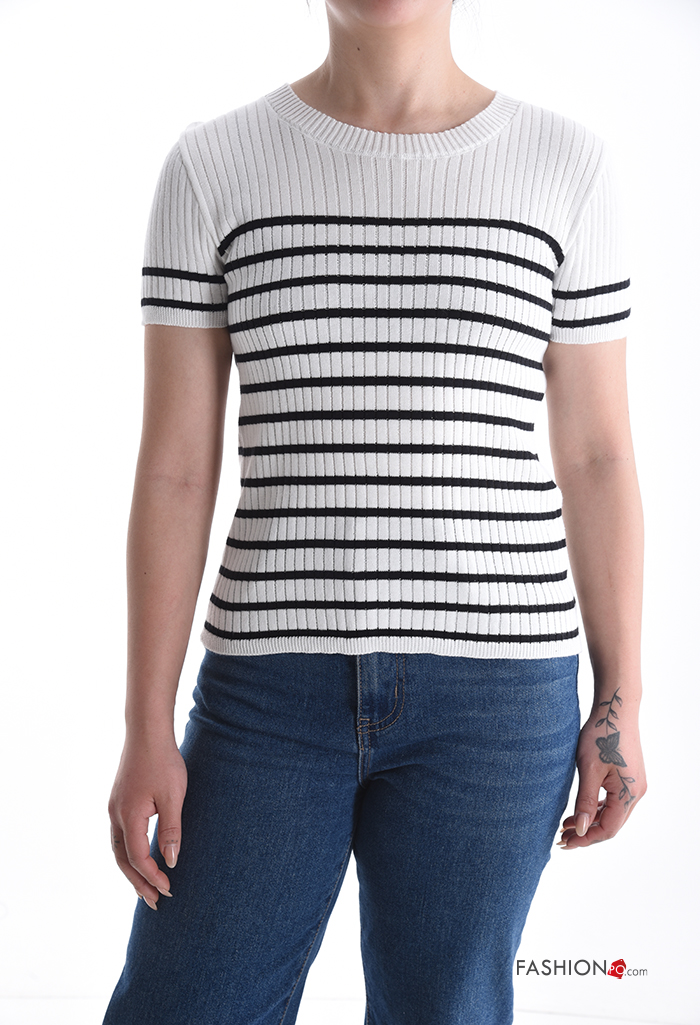 Home > Abbigliamento > T-shirts e Top > T-shirt in Cotone maniche corte costine girocollo Fantasia righe