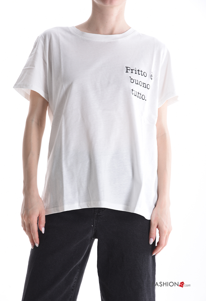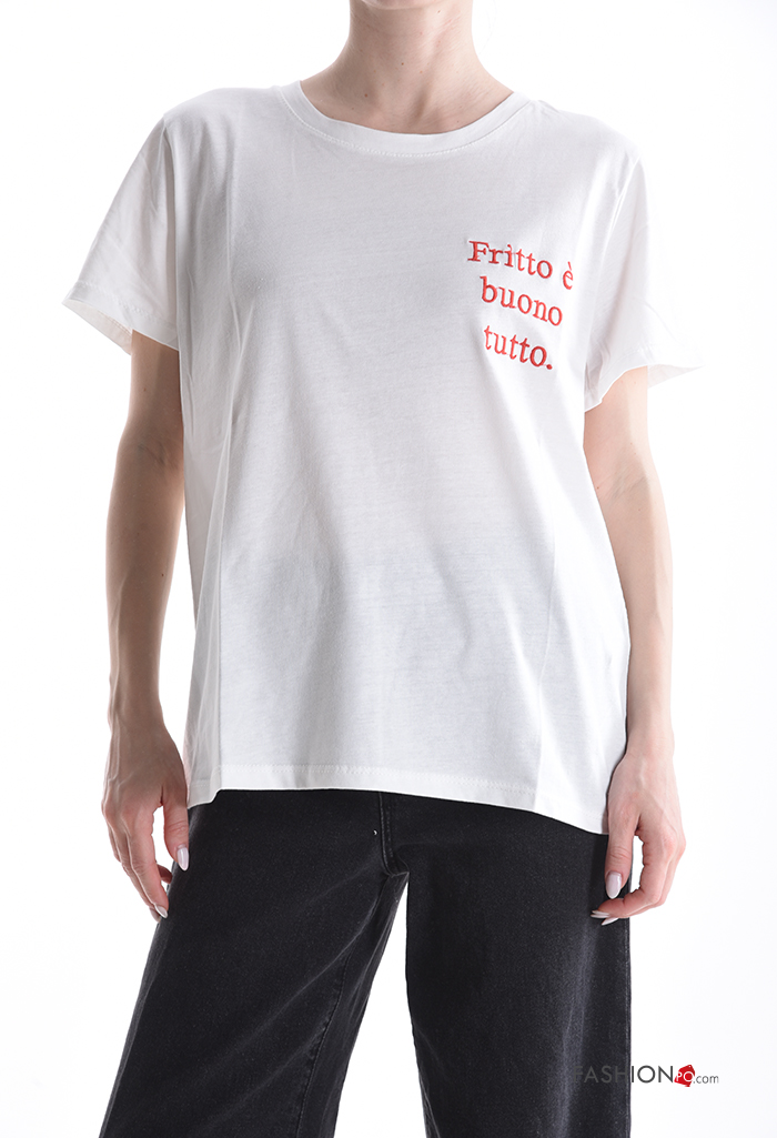 Home > Abbigliamento > T-shirts e Top > T-shirt in Cotone maniche corte girocollo Fantasia ricamata