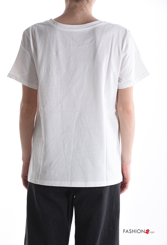 T-shirt in Cotone maniche corte girocollo Fantasia ricamata