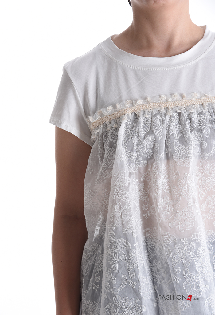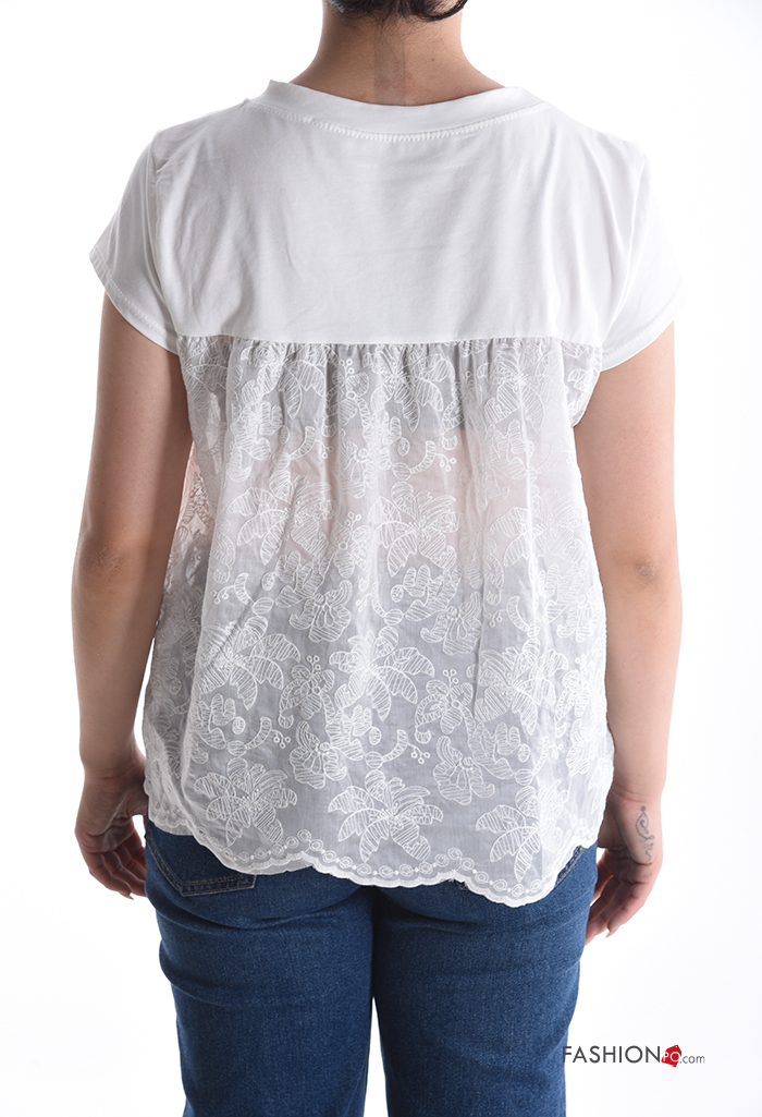 Home > Abbigliamento > T-shirts e Top > T-shirt in Cotone girocollo pizzo maniche corte Fantasia ricamata