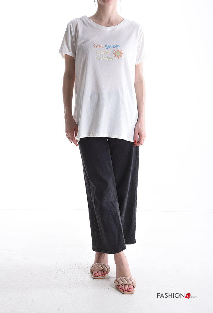 T-shirt in Cotone maniche corte girocollo Fantasia scritta