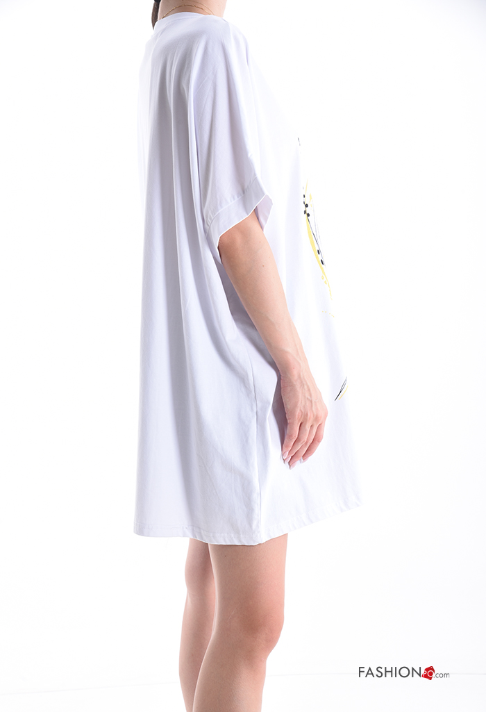 T-shirt in Cotone girocollo oversize maniche corte Fantasia stampata