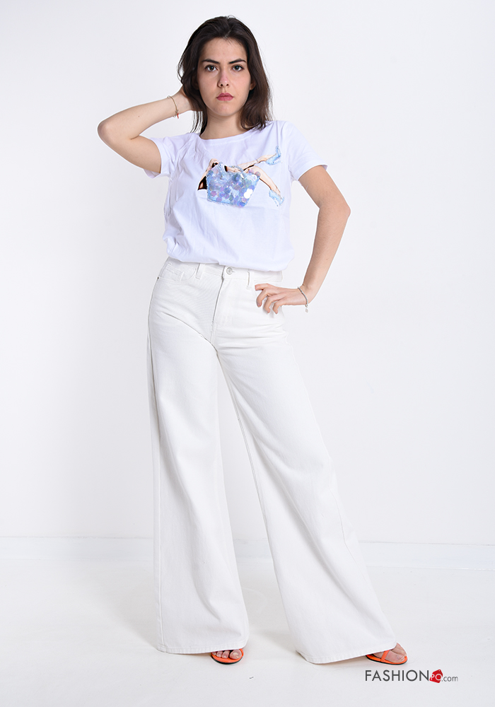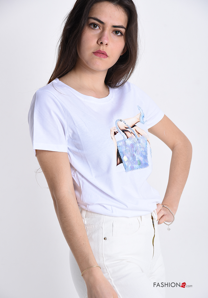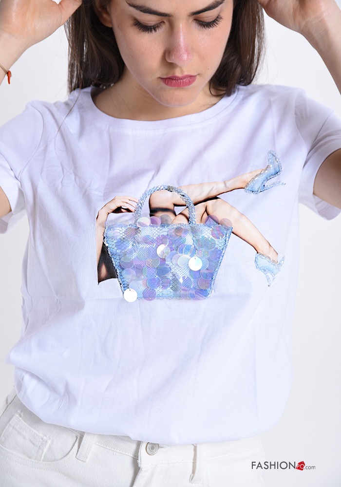 Home > Abbigliamento > T-shirts e Top > T-shirt in Cotone Fantasia stampata con paillettes