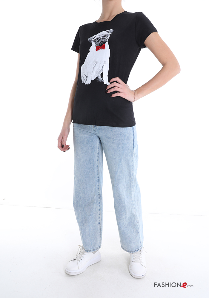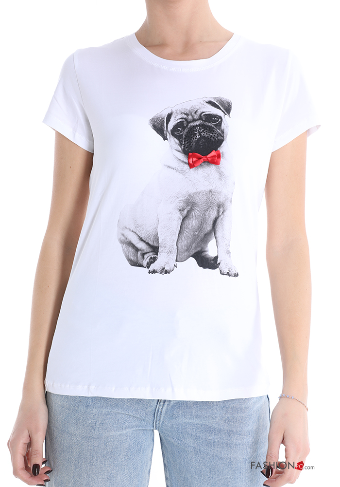 Home > Abbigliamento > T-shirts e Top > T-shirt in Cotone Fantasia animali con strass