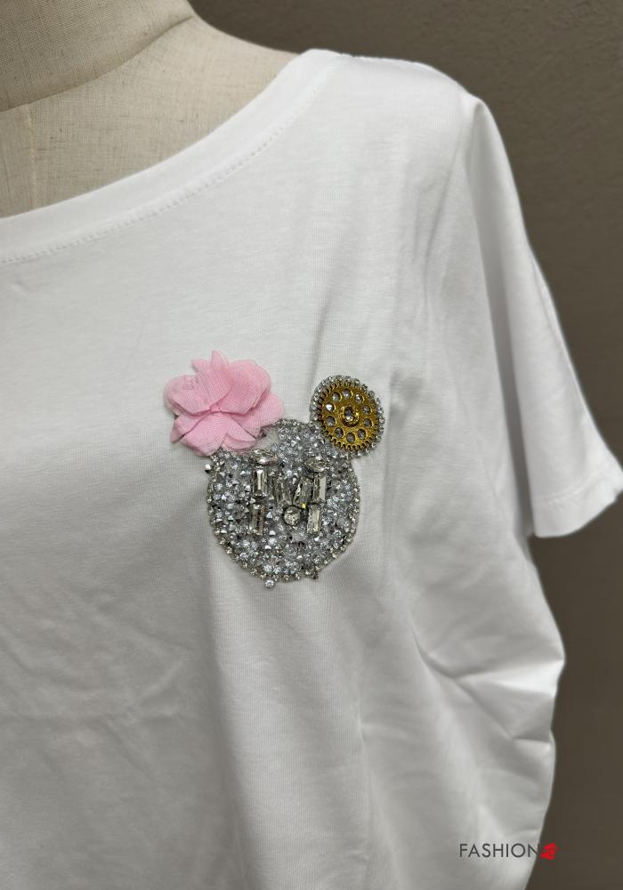 T-shirt in Cotone girocollo oversize maniche corte con strass